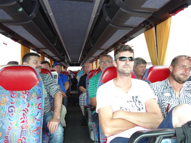 Luxe touringcar, de man die eruit ziet als James Bond is Jakob