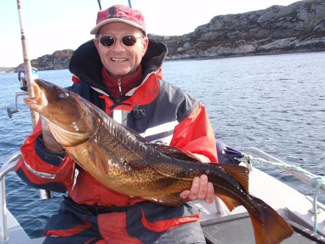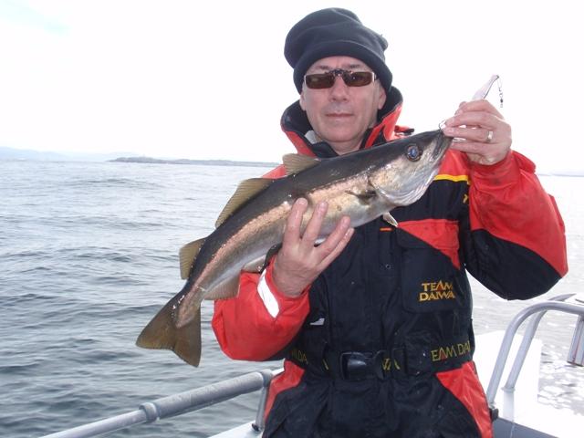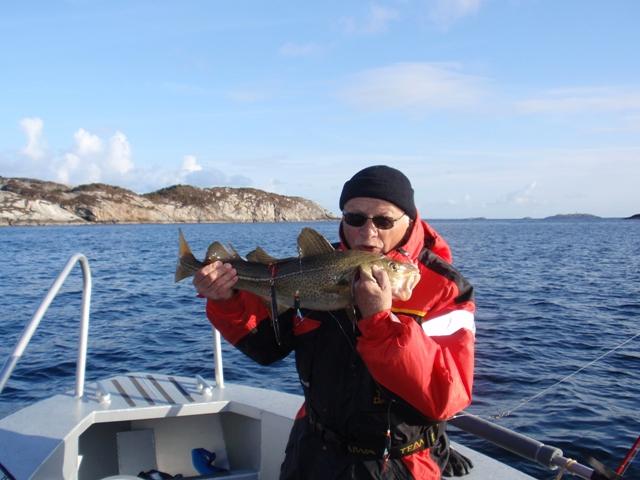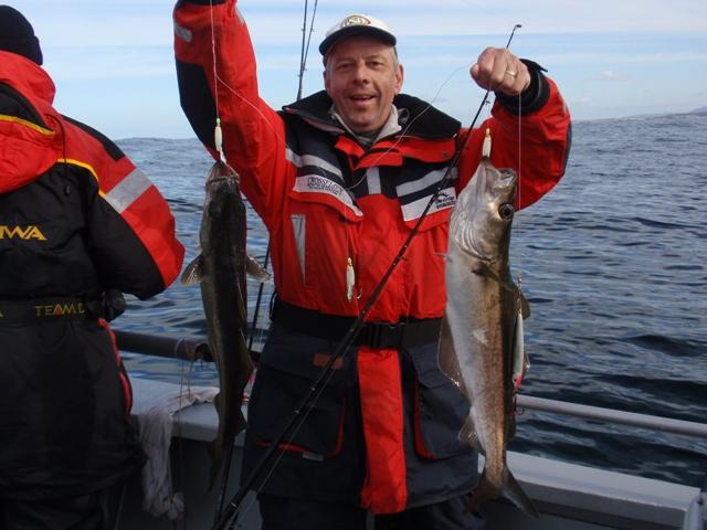Om 07.00 uur zette de boot koers richting Tekslo, een eilandje op de grens van fjord en open zee. Het was half zonnig en een te verwaarlozen ZO-wind. Omdat deze zou aantrekken naar stevig bleven we hier driften. We zochten de onderwaterbergen op en pilkerden erop, -naast en -voor. Tussen de onvermijdelijke koolvissen kwamen ook mooie pollakken en gullen naar boven.