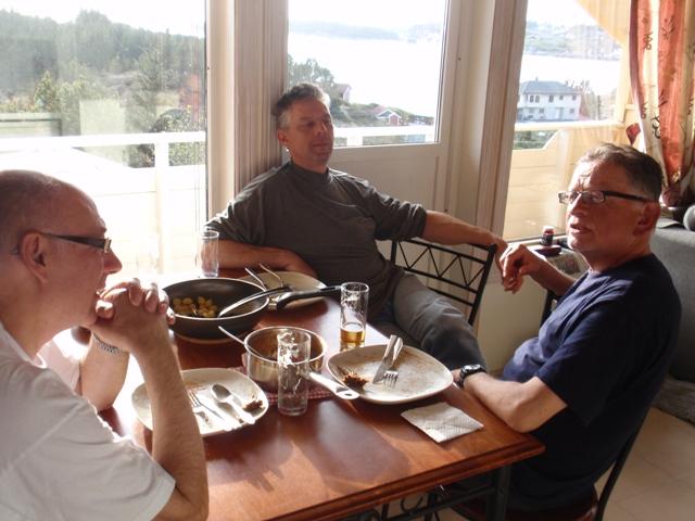 Allereerst de prima zorg en regelingen via Cordes Travel en dat betekent eenvoudig gezegd: instappen in de auto, in negen en een half uur rijden naar Hirtshals, daar de boot nemen naar Bergen om 18 uur later daar aan land te gaan en via een duidelijk geprinte route van Raffie in een klein uurtje de auto heuvelopwaarts te parkeren bij het schitterend gelegen huisje van Magne Sanden. Magne gaat zelf met regelmaat het water op en is dus een ideale raadgever v.w.b. de hotspots in en buiten het fjord. Feilloos weet hij deze op de zeekaart aan te wijzen en nog aan te vullen met niet gemarkeerde plekken.
