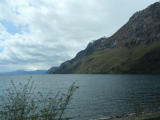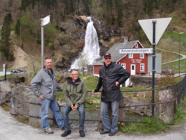De weersvoorspellingen waren zo ongunstig dat we al snel besloten hadden de dag door te brengen in en langs het grote Hardangerfjord. Thei loodste ons als een volleerde gids er naar toe en doorheen. We liepen door de sneeuw en onder de indrukwekkende waterval van Fossalun door. Moeilijk voor te stellen hoe de wintermaanden hier uitzien als nu nog binnenstukken van het fjord bevroren zijn. Dan moet je als huidige Noor zeker zo gehard zijn als je voorouders, de Vikingen.