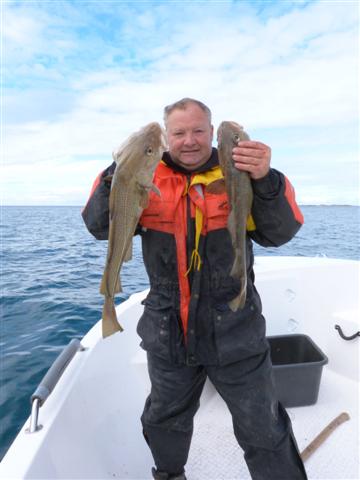 We hebben heel veel kabeljauw en schelvis gevangen van 60 tot 80 cm. Ook was er een mooie pollak bij van 90 cm en op het laatst kwam onze eerste heilbot naar boven. Hoewel het geen grote (55 cm) was, waren wij hier heel blij mee.