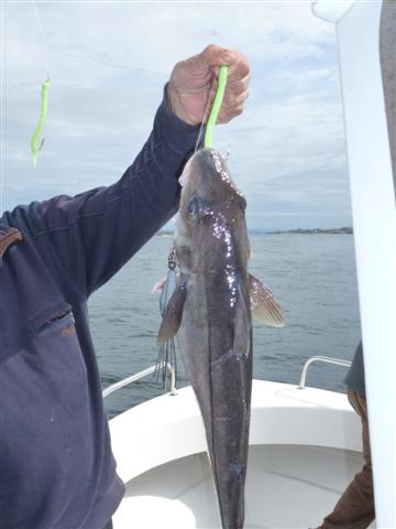 Op woensdag gingen we wat verder de zee op om leng te vangen en dat lukte aardig maar onze buren van 2 deuren verder, ook Nederlanders uit Hillegom spande de kroon zij hadden met z`n achten bij 500 kg leng gevangen de grootste was 172 en woog ruim 25 kilo. Ze vroegen nog waarom wij niet naar die plaats waar hun gevist hadden waren gekomen, dat was helaas een mis communicatie anders hadden we dat wel gedaan.