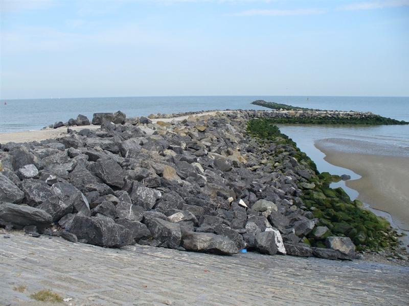 Deze golfbreker,nu van om en bij de zeshonderd (600) meter lang is een zeer goed te bevissen stek. Je kan naar de kop van de breker twee (2) uur na hoog water, tot 2 uur voor hoogwater opkomend tij. Bij hoog water is enkel de eerste tweehonderd (200) meter toegankelijk. Bij laag water is het wel een kunst om een vis op het droge te krijgen vanwege het steenstort onder aan de waterlijn. Het is dan ook opletten als je naar beneden (waterlijn) tracht af te dalen.