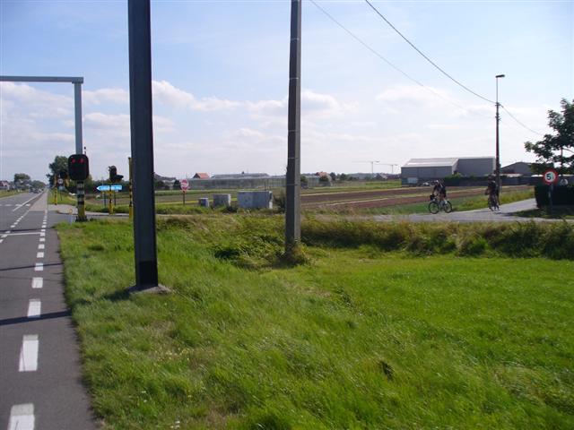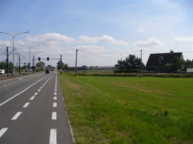 Oostende komt, in Lombartsijde aan de verkeerslichten, waar de tram de hoofdweg