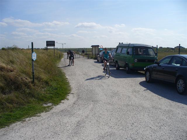 Deze is versperd met een hek. Veel vissers en bezoekers parkeren hier hun wagen,