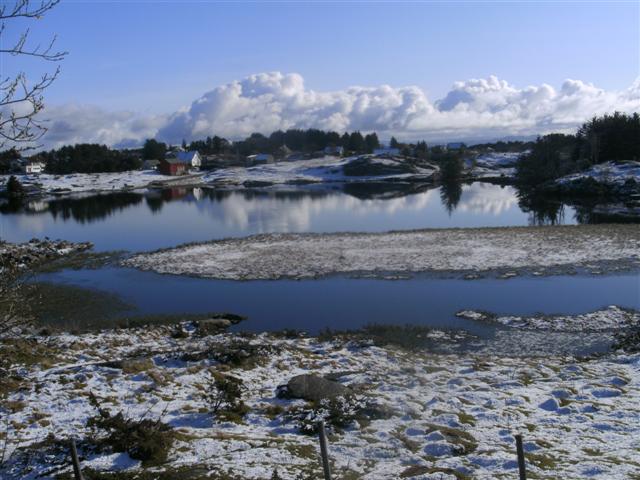 Gekleurde Hellesoy Haven huisjes aan het water.
