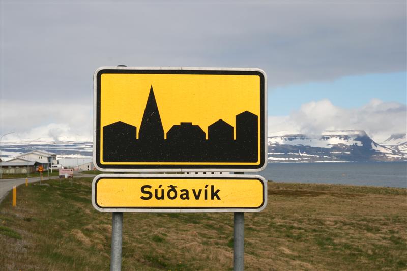 Bij de gele stip is Sudavik, 1 uurtje varen naar open zee, maar wel beschut