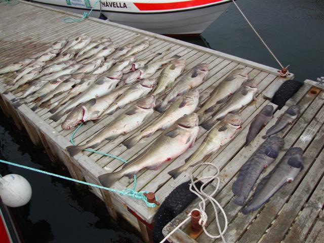 Mijn vakantie werd op deze dag ook gemaakt. Ik had het geluk een kabeljauw te vangen van 130cm bij 18 kg. Werkelijk een droomvis! Na een aantal uurtjes te hebben gevist, ging het weer waaien en waren we genoodzaakt om voor onze eigen veiligheid terug te keren naar de luwte van het fjord. De golven werden echt hoog. Op stek 3 aangekomen hebben we in 2 uur tijd de kist wederom volgevangen. Dit was een dag om niet snel te vergeten. Morgen nog zo�n dag????