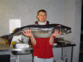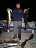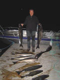 Toch effe een laattijdig bericht om te laten weten dat we een geslaagde reis achter de rug hebben. Mooie huisjes�.degelijke boten�.mooie locatie en over het weer konden we zeker niet klagen. Echter naar vangsten toe hadden we meer verwacht�maar ja�..denk niet dat we alleen waren�.misschien een beetje te wijten aan weinig stroming (getijdetabel gaf als ik me niet vergis �doodtij� aan?).Toch hebben we het geluk gehad want de voorlaatste dag vielen we op een school jagende beren van koolvissen�..het was gewoon onbeschrijflijk�mega�..feest�voor zulke momenten doet men het niet?.....We zagen langs de kant op zee (niet in fjord) plotseling vissen aan het oppervlak verschijnen��vlug daarheen en met licht materiaal met een jig van +/-40 gr er naar toe gooien�.en wat dacht je �BINGO�.met 4 man op dezelfde moment koolvissen van tussen de 8 en 10.5 kg., echt sleurwerk maar genieten ten top. Nadien school weg�.en wij met de boot rondjes varen totdat we op de dieptemeter weer massa�s vis zagen�.weer uitgooien die jig�en weer BINGO��dit hebben we zo�n 7 � 8 maal kunnen herhalen�..op zo�n 3 uur meer dan 100kg vis in boot. Totdat de wind een beetje teveel begon toe te nemen en het al redelijk donker begon te worden, voldaan terug naar huis (23:00h)�.om dan nog te fotoshoots te nemen en te filmen om dan nog tot 2:00 te staan fileren�. En de volgende dag opnieuw om 8:00h op het water��wat kan het leven toch mooi zijn�..