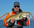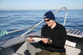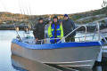 De wekker op 6 uur �s ochtends gezet, zodat we er op tijd uit zouden zijn om te gaan vissen. We hadden namelijk gehoord van Magne dat in de ochtend de zee erbij lag als een spiegel. Nadat we uit bed waren even snel eten en daarna te vissen. Om half 8 waren we aan het vissen en al snel had Menno zijn eerste vis. Even later had Menno er nog een, pas daarna ving Jeroen een vis. Arnold werd al wat minder vrolijk omdat hij maar niks ving, maar het werd hem wel gegund door Menno en Jeroen. Dat bleek ook wel toen even later Arnold ook eindelijk beet had en hij een sterke vis had gehaakt. De vis trok de reel een aantal keer door de slip en Arnold had het best zwaar om de vis omhoog te takelen. Menno had snel de videocamera gepakt en net toen de vis bij de boot kwam begon hij met filmen. In eerste instantie dachten we dat we de 1e kabeljauw gevangen hadden, later bleek echter dat het om een extreem grote gul ging. De vis bleek namelijk 75 cm te zijn en 4,5 kg (het is pas een kabeljauw vanaf de 80 cm). Weer even later had Menno nog een paar vissen gevangen en toen ving Arnold een mooie koolvis. Toen was het Jeroen die al een tijd niks meer gevangen had en het toch wel weer eens tijd vond worden voor een visje. Dit verzoek werd beantwoord in de vorm van een prachtige gul van 68 cm en 3 kg. Om 1 uur gingen we terug en waren er in totaal 11 vissen gevangen, waarvan Menno er 7 had gevangen. Toen we aankwamen bij de ligplaats van de boot de vissen geslacht en gefileerd. Hier waren we rond 2 uur mee klaar. Daarna gingen we maar even een broodje eten, want we hadden behoorlijke trek gekregen. Nadat we hadden gegeten gingen we meteen weer te vissen, alleen de wind was nu helemaal gaan liggen en er stond ook geen stroming meer. Driften werd ons dus erg moeilijk gemaakt en hierdoor konden we ook niet echt goed de vis plekken afvissen. Er werd in de hele middag geen vis gevangen, dit was wel een beetje jammer. �s Avonds had Jeroen spaghetti gekookt, dit was wel goed te eten. Na het eten zijn we gaan kaarten. Morgen komt Raffie bij ons om 9 uur en dan gaat hij mee te vissen. Het is een beetje te hopen dat we grote vissen vangen, dit omdat Raffie bezig is met een nieuwe dvd.