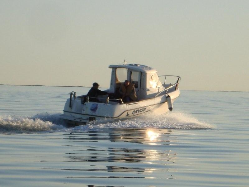 Uiteindelijk heeft Linda het voor elkaar gekregen dat Olaf en een kompaan ons met twee ARVOR vissersbootjes zijn komen ophalen aan het veer in Stavanger. Onze auto�s moesten we achterlaten en de dag erna ophalen. Het hoogstnoodzakelijke werd er echter uit genomen: bier, visstokken, eten, slaapgerief! Schitterend geregeld van Linda, waarvoor nogmaals dank!