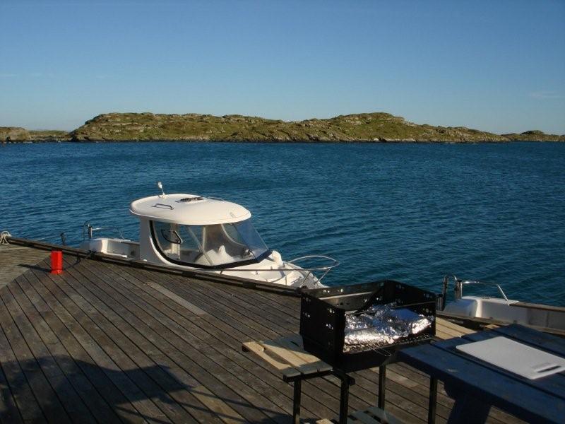 De tweede dag zijn we de voertuigen gaan ophalen, we kregen aansluitend de uitleg van de vissersboot en nadat we goed ge�nstalleerd waren, zijn we een eerste maal uitgevaren! Als snel hadden we dankzij de goede viskaart en de GPS een interessant plaatsje gevonden 9 Km ten noorden van het eiland �aan de witte paal�. We vingen er hopen koolvis van kleine tot matige grootte. De meeste hebben we teruggezet omdat we voor �grotere vis� waren gekomen. Ons avondmaal was in ieder geval al geregeld. Verse koolvisfilet in papillotten op de BBQ, onder een prachtige avondzon aan het water, heerlijk!
