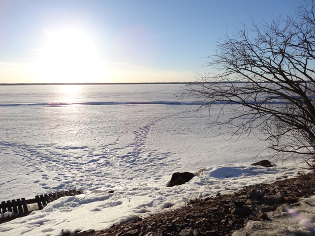 Door de bodem zie je het water (nu ijs) 75m vh huisje.