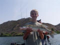 Na een goede nacht rust in het airco appartement kregen we een guided tour voor 8 uur op het stuwmeer. Robin leerde van gids Stefan de trucs van meerval , snoekbaars en blackbass vissen.Een paar blackbass werden gevangen, meerval was overdag op het stuwmeer nogal lastig. Daar moet je toch echt in de nacht voor vissen in een tent vanaf de oever. Wel ving Robin, toen de gids een andere stek aan het zoeken was, een mooie 80 cm snoekbaars.