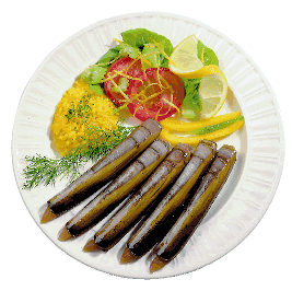 Een bordje met mesheften als voorgerecht.
