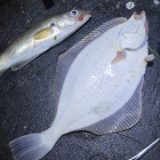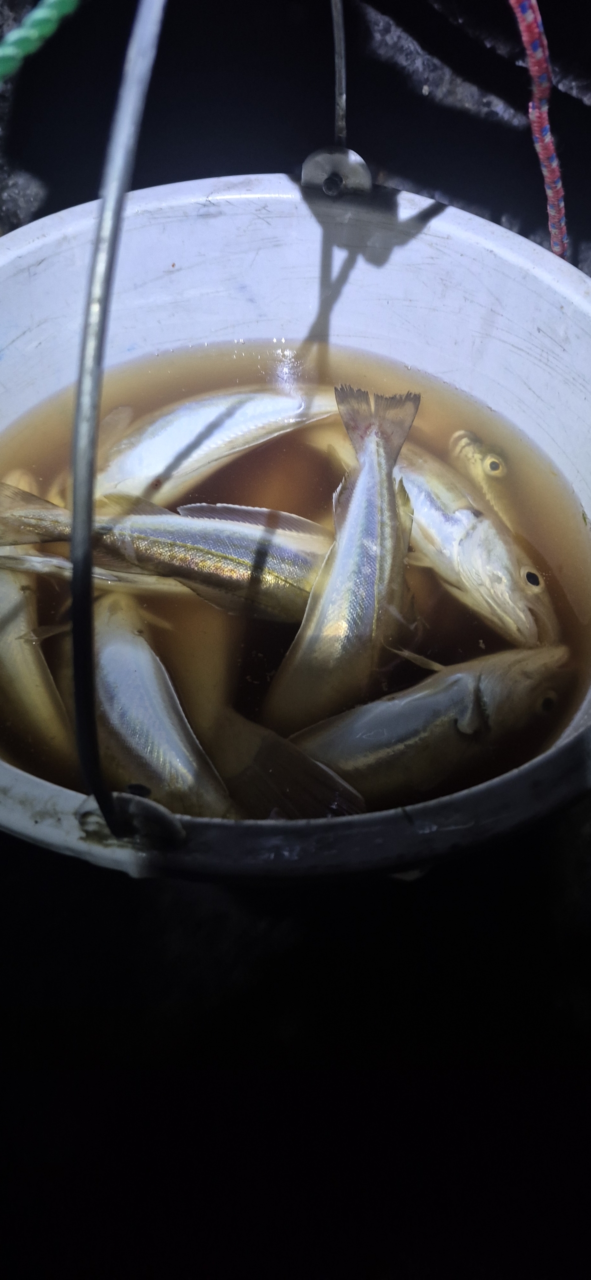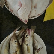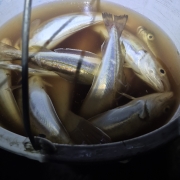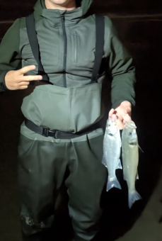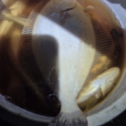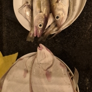 Gevist met srebolino drijvend, en stukjes zalmhuid( gratis bij de visboer.