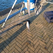Maandag 10 november naar dezelfde stek gegaan als afgelopen donderdag een week geleden met mijn vismaat Ton. Gevist van 10:00 tot 14:00, laag om 11:00, met de pieren die over waren van de verenigingswedstrijd van zaterdag jl. Omstandigheden compleet anders met een relatief harde wind in de rug en weinig echte branding. Vangsten waren ook wat minder. Niettemin mocht ik, met 2 maatse baarzen, een dikke bot (38 cm), een aantal dikke wijtingen en wat kleine baarsjes en botjes, absoluut niet ontevreden zijn. Mooi voor de visser dat de dikke baarzen er nog zijn, wellicht voor de natuur wat minder. Leuke ochtend gehad.