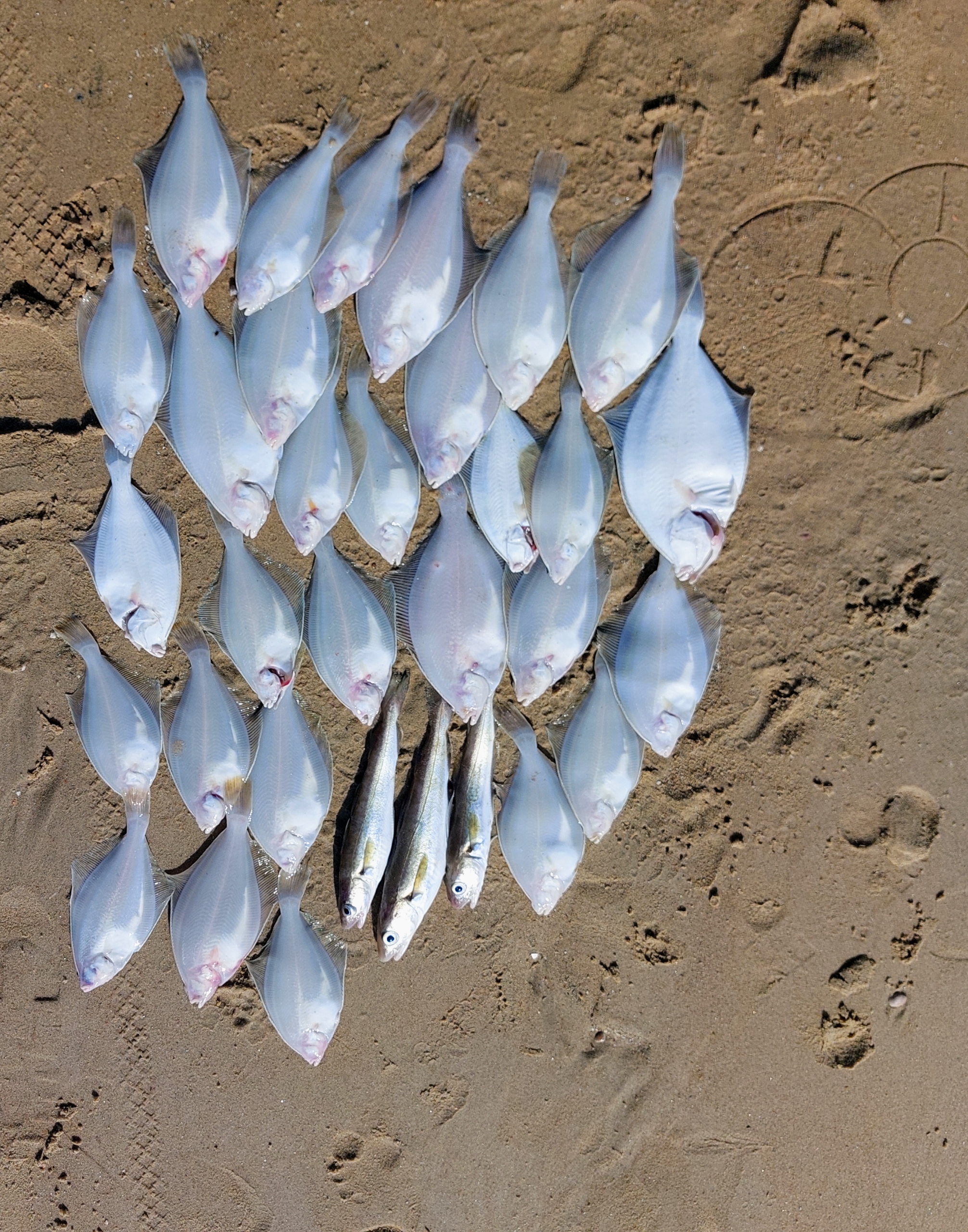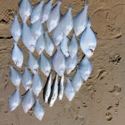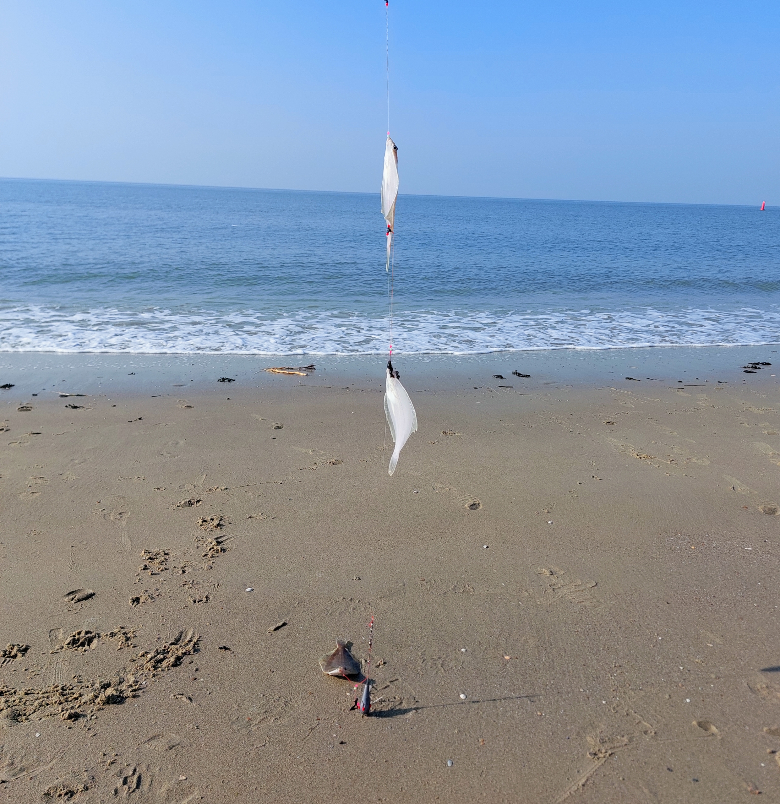 Zondag aan Zoutelande gevist. Een uur voor laagtij gestart met zeer mooi lente-weer. Resultaten lieten niet lang op zich wachten, de eerste 3 worpen leverden scharretjes op. Tijdens laagtij even een half uur stilte, maar daarna was het kermis. In een zeer vruchtbaar uur was elke worp binnen enkele minuten succesvol, zelfs 4 maal in triplet-vorm. Wijting bleef wat achterwege deze keer, het waren vnl hongerige scharren die het aas vrij snel vonden. 4 uren opkomende tij gevist en dan gestopt, aas was op (600gram pieren). Uiteindelijk 26 scharren, 3 botten en 3 wijtingen meegenomen ter consumptie. 12 scharretjes en 6 ondermaatse wijtingen teruggezet, kortom zeer vruchtbare visdag.
