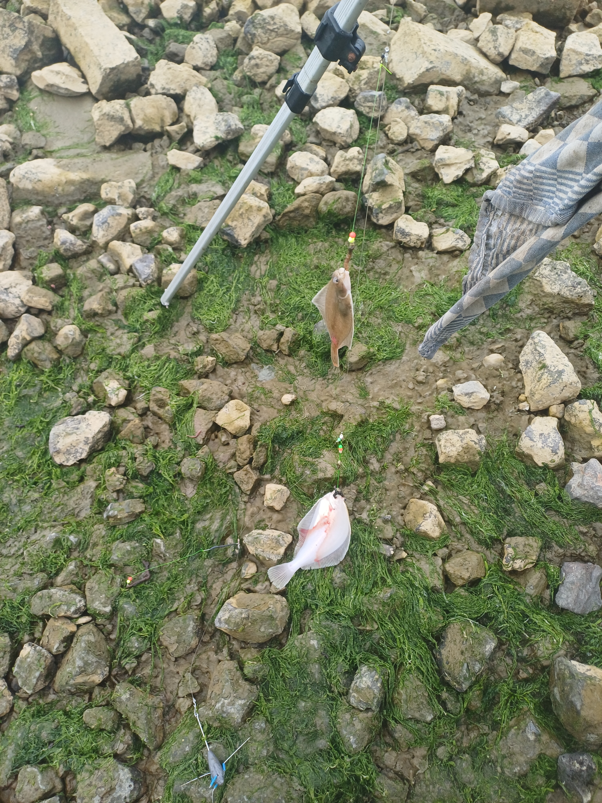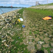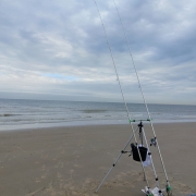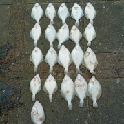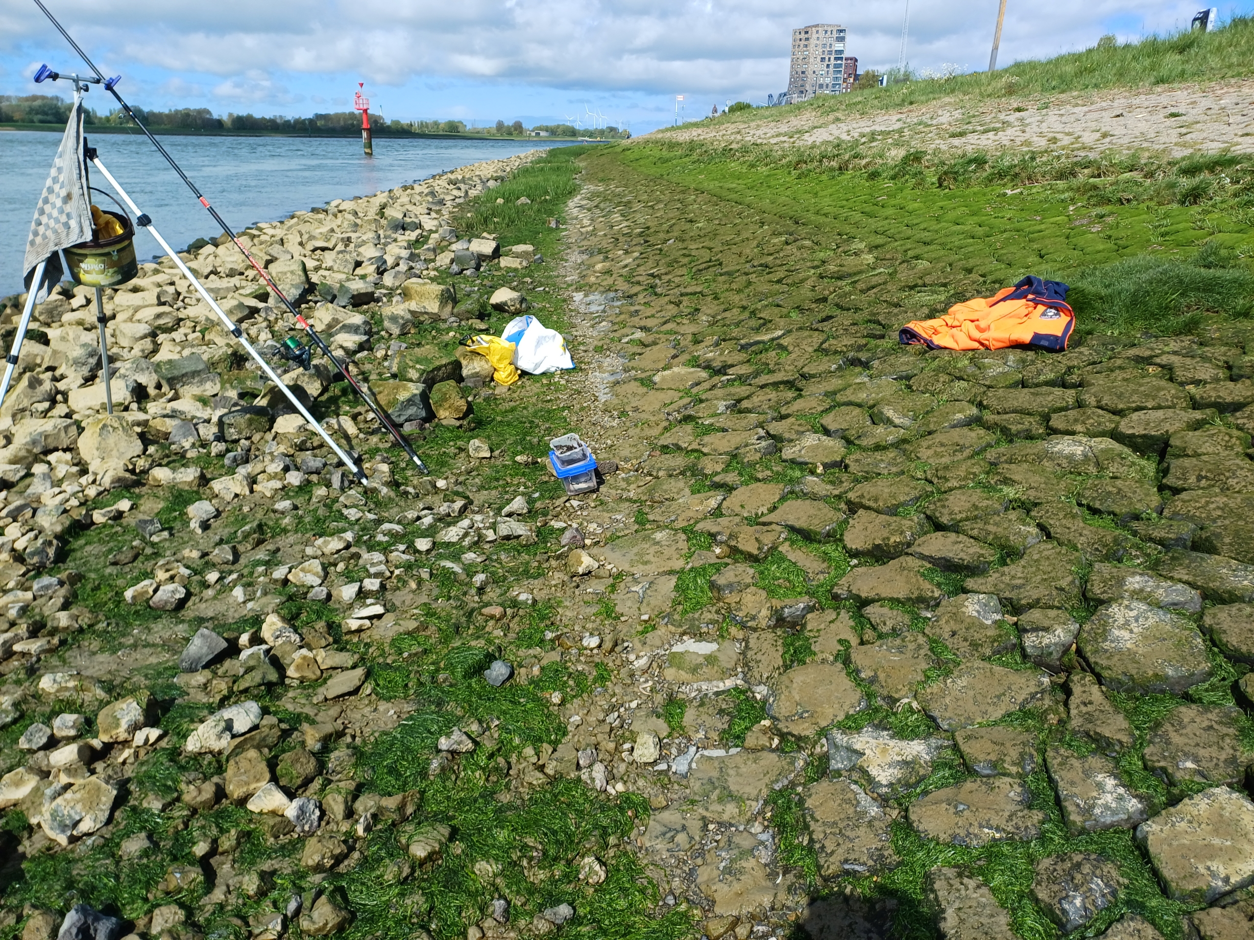 Zaterdagmorgen hielden we onze 2e wedstrijd voor dit seizoen. Plaats van handeling was de autopier bij de trailerhelling op Neeltje Jans. Dat is geen peuterparcours, maar een stek met diepwater, veel stroming, zeer comfortabel maar ook een heel erg wispelturig parcours. De lange latten mee, klapankers in de koffer en een driepoot. In de koelbox de laatste piertjes en zagers overgehouden van ons Friesland ervaring van vorige week. Deze keer 5 deelnemers aan de start. Ik had het lage kopnummer getrokken aan de kant van de grote bolder. Gelijk bij de eerste en tweede worp al een mooie schar, dat begon goed. Even water kwamen ook Henk en Wim van de nul af, maar Dirk en Frits hadden blijkbaar een slechte bodem met alleen materiaalverlies en ergernis tot gevolg. Wim deed intussen op het ander kopnummer goede zaken met ook een schar van 28 erbij. Tijdens de kentering kon ik een paar worpen zonder klapankers doen, maar na de hoogwaterkentering waren er weer ankers nodig om de boel op zn plek te houden. Mn voorspoedig start kreeg geen gevolg, ik bleef steken op die twee scharren van elk 25 cm. Wim en Henk kwamen elk tot vier stuks met de volgende uitslag: