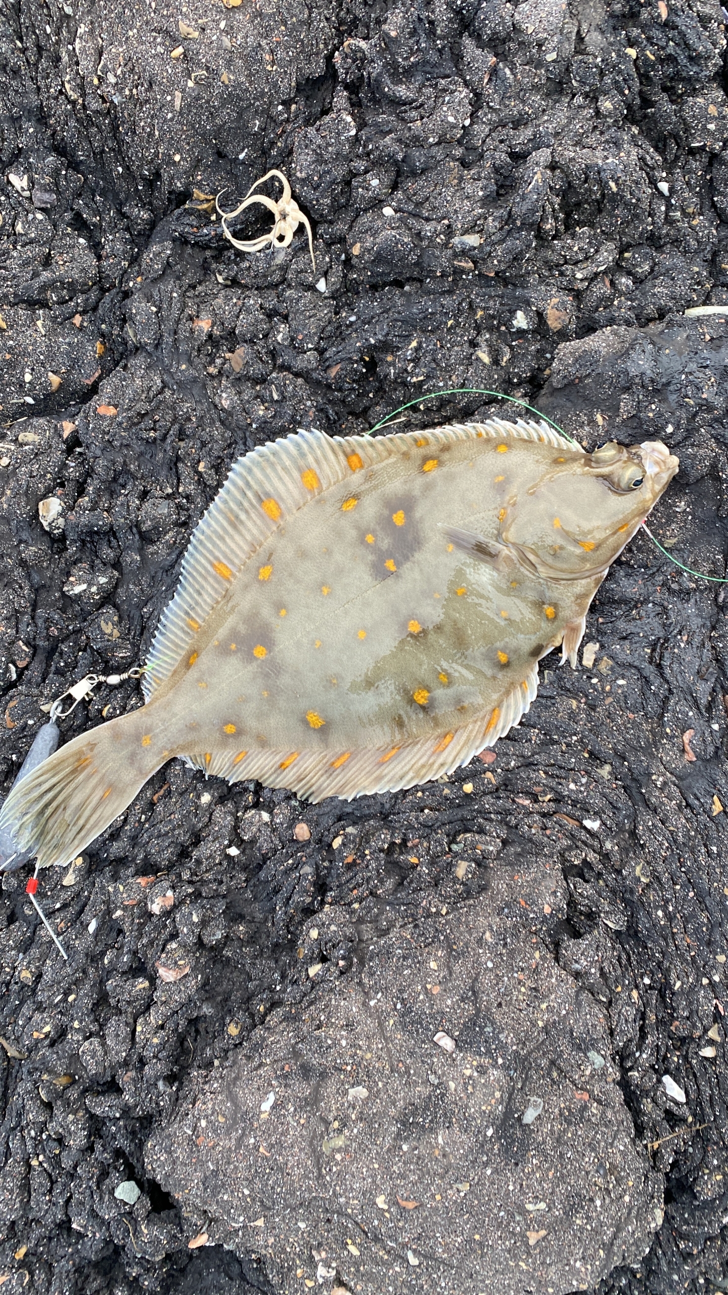 Gisteren vroeg op stap op de e bike om te Gaan vissen aan Colijnsplaat begonnen met afgaandtij al met de eerste worp kwam der al een scharretje mee naar boven dat ging ook zo door met de kentering werd het minder wel sport gehad aan een boot die vlak onder de kant kwam en me lijn mee nam bedankt daar voor 🙄 na dat het tij gekenterd was begon de vis weer te komen in de vorm van doublets en 1 triplet hoe hoger het water kwam des te meer stroming 170 grams klapanker bleef nauwelijks liggen op dat moment wel nog leuk vis gevangen waar onder een schol van 38 centimeter 2 tal Baarsjes de eindstand was 22 vissen 1 schol 1 wijting 4 zeebaarjes de rest schar gevist van 08:15 tot 15:30 ( aan het einde super veel last gehad van muggen daar door van de stek gedreven)😬