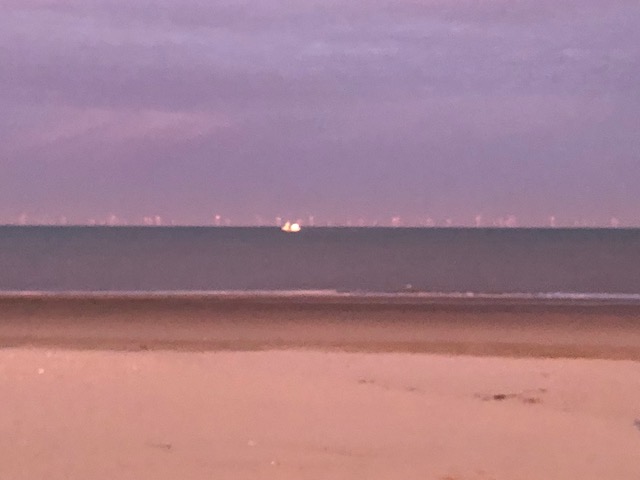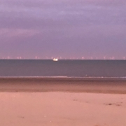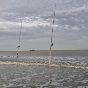 Wat een mooie visserij was het weer vanochtend vanaf het machtige Noordwijkse strand. Al vroeg waren we paraat, tijdens de schemering betraden Wout en ik al het strand. De rode lichtjes van de wind turbines ver in zee waren nog ,,aan,,…….terwijl een verlichte garnalen kotter flink aan het werk was (foto).