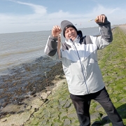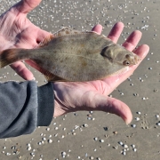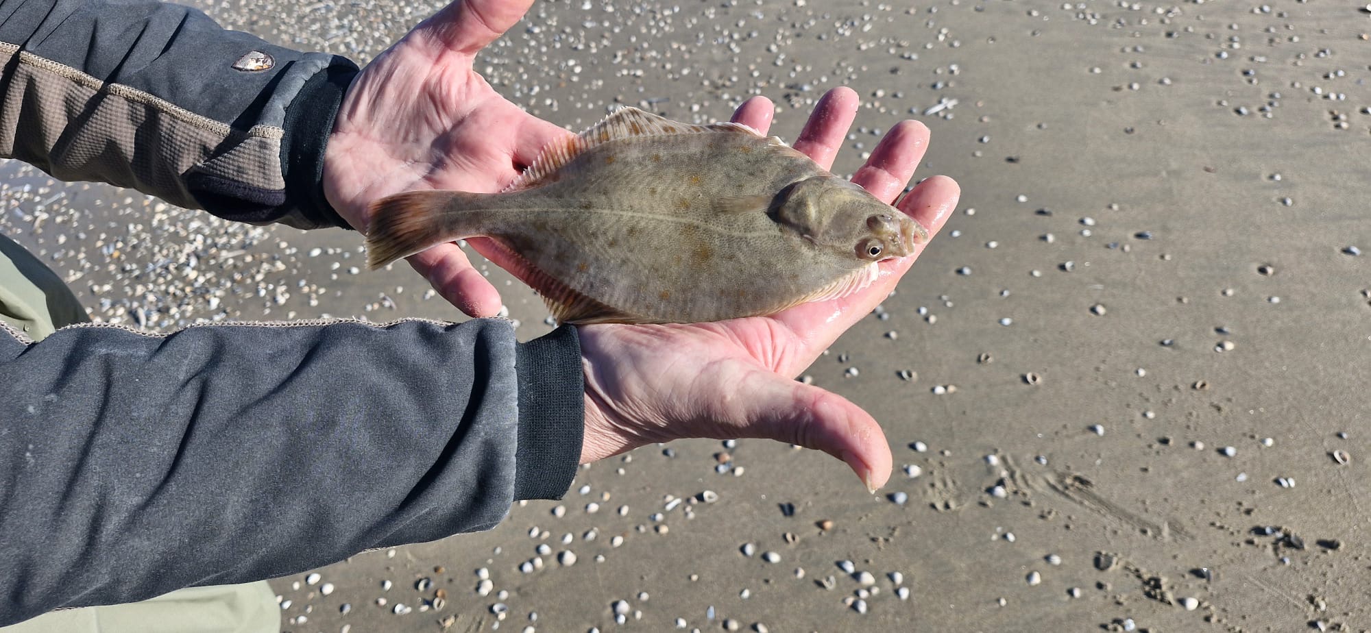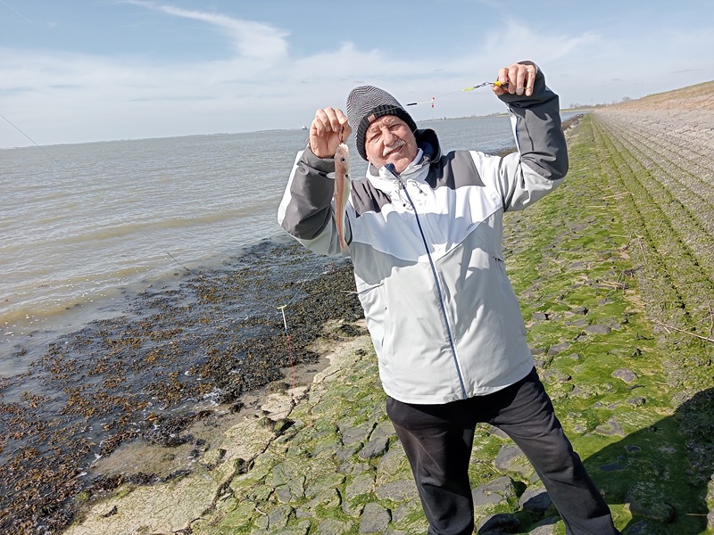 Tot laagwater een enkel scharretje van postzegelformaat gevangen. Nadat de stroming richting hoogwater erin kwam, haalden we regelmatig scharretjes boven, maar bijna allemaal veel te klein.