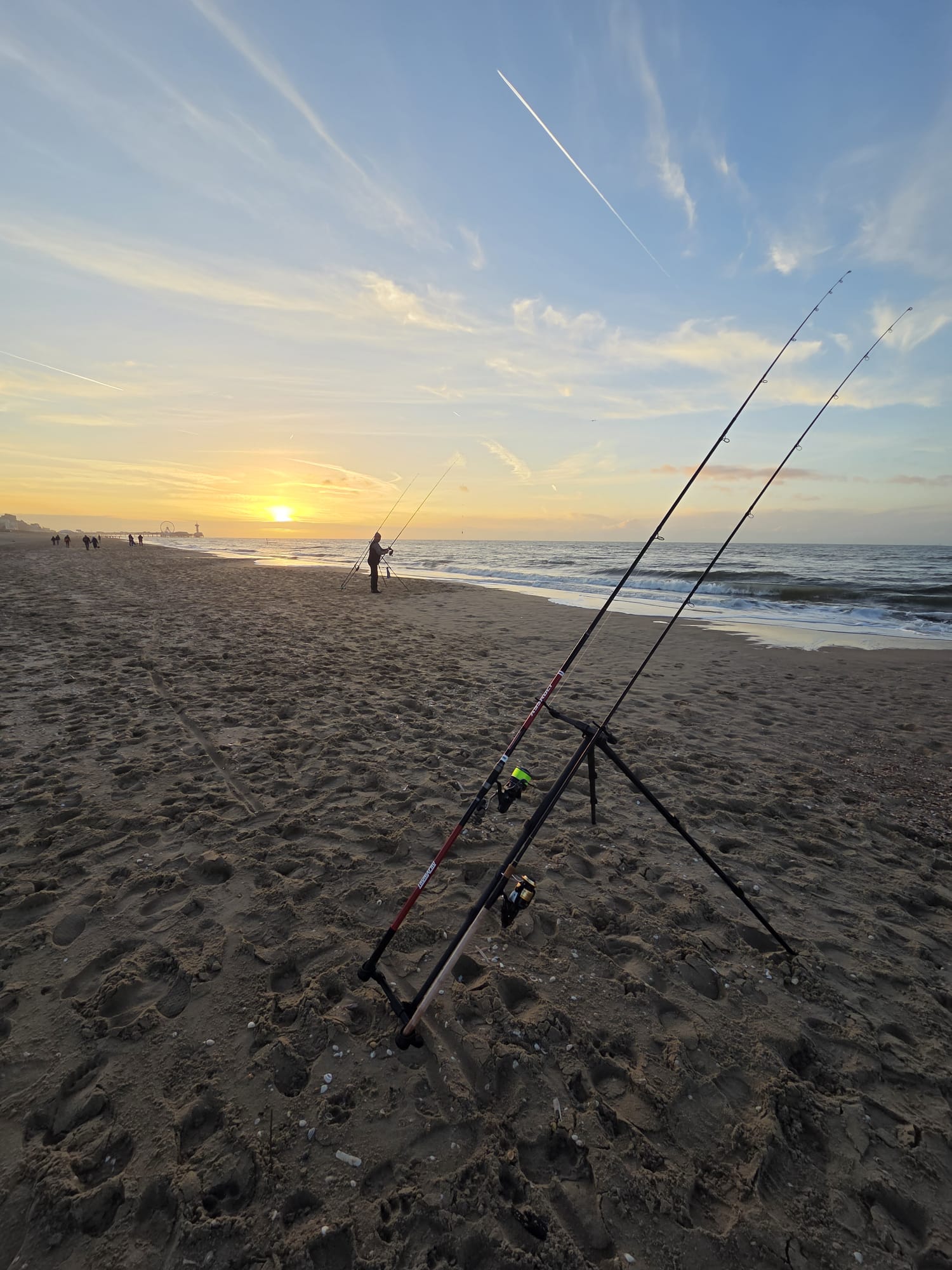 Na een explosie van positieve berichten op deze site en bijna alle Feestboek-groepen m’n beide vismaten verzocht om zich naar de diepe ( nou ja diep..) geulen van het Noorderstrand van Scheveningen te begeven. Dik betalen op het Zwarte Pad en dan nog met volle bepakking in de waadbroek een kilometer tot voorbij de bunkers sjouwen. De heenweg viel nog mee…