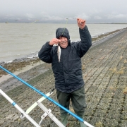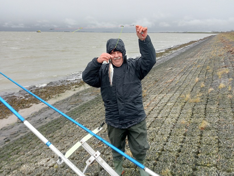 Vandaag met Gerard en Chris afgereisd via Lepelstraat en Halsteren naar Westkapelle . Stonden voorbij het vuurtorentje bij de golfbrekers tussen de stenen en het zand. Rond half tien de lijnen te water. Ikzelf meteen een klein zeebaarsje , even later Chris ook een daarna nog twee gevangen en dat was het wat betreft de vangst , heel mager. Na spoedberaad besloten te verkassen naar Vlissingen , dus inpakken die zooi . Chris en ik druk aan de gang met alles naar de auto te brengen . Tot onze grote verbazing zagen we dat Gerard had besloten de “nieuwjaarsduik” wat eerder uit te voeren dan 1 januari . Bij het los maken van de lijn van wat stenen was hij zijn evenwicht verloren en lande op de buik in het zilte nat . Wij konden hier niet mee lachen 😇 . In Vlissingen nog wel flink wat wijting gevangen . Verder toch een hele leuke visdag , mooi weer en een brandschone Gerard. Mvg Theo