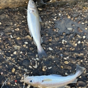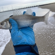 De weersvoorspellingen waren stukken beter en werden nog beter dan verwacht. Kwart over tien laag, een afnemende wind (tot ZW-3) en zelfs een zonnetje erbij. Als locatie dezelfde stek als zondag en met z’n tweeën gevist van 9:30 tot 13:30. In het begin vooral maatse wijting, tijdens de kentering weinig leven en daarna vooral schar. Als afsluiter weer een scholenbaarsje.