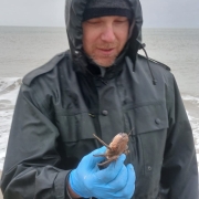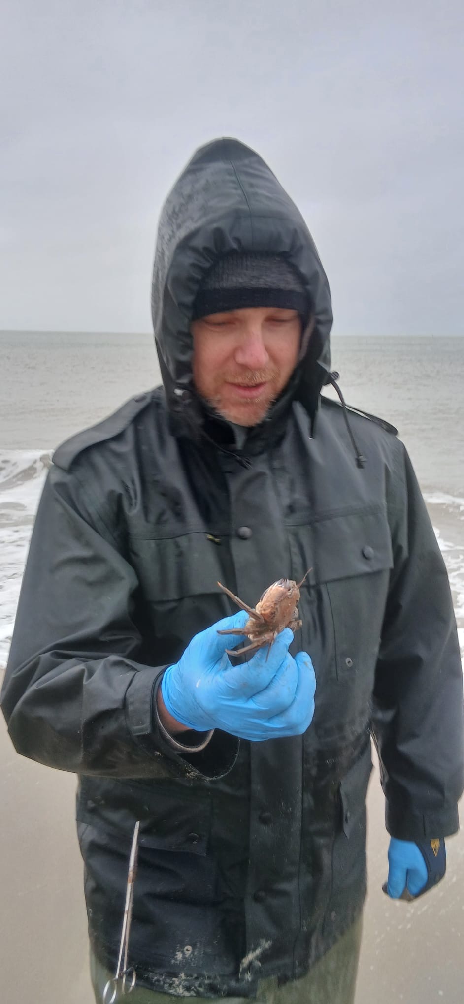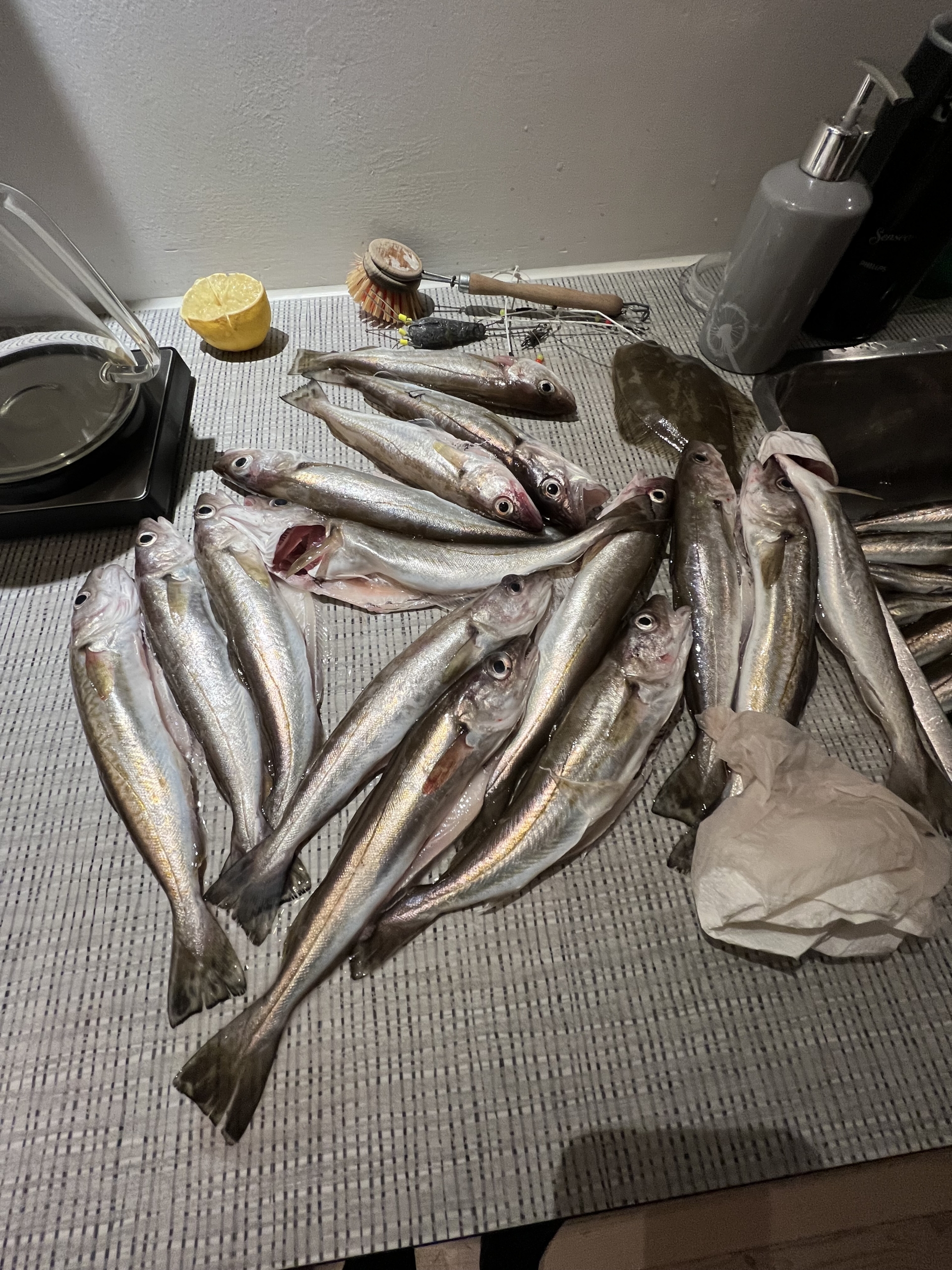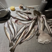 Een zwager vertrok volgens planning rond twaalf uur naar huis. M’n andere zwager en ik hebben uiteindelijk tot half twee gevist, toen het even wat droger was. In het begin nog 1 kleine wijting gevangen, later vooral schar en nog wat grotere wijting. Als afsluiter 1 scholenbaarsje. De schar was weer een mix van klein en mooi aan de maat. Tussendoor ook nog 3 beste krabben en een jong meeuw gevangen. Die laatste vloog door m’n lijn, maar liet zich gelukkig rustig naar de kant trekken. Daar hield ie zich ook rustig en waren de paar slagen om z’n vleugel er snel weer vanaf.