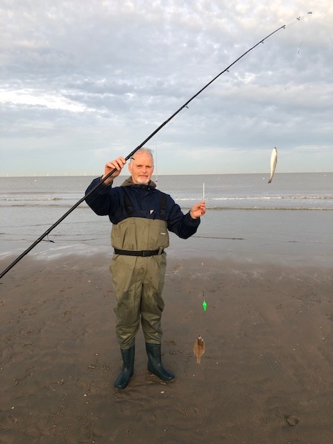 Nadat ik me broer had gevraagd of hij weer een keer mee wilde om te gaan vissen. Hij zei dat hij wel zin hier in had en dus op zondag gebeld voor het zeeaas te bestellen. Jan had deze keer maar drie ons pieren besteld en voor mij was het deze keer 5 ons pieren. Wij zijn die vanochtend vroeg gaan ophalen en daarna besloten om eens bij Colijnsplaat te gaan proberen. Het water daar was al twee uurtjes aan het opkomen en met de wind van links naar rechts toe. Eerst maar een hengel opgetuigd en kort daarna ging de onderlijn richting het zilte nat toe en was het wachten of wij daar vis gingen vangen. Ook zagen we drie bootjes van Dixhoorn leggen en dat wil dan zeggen dat ze toch vis gingen vangen. Ook had Dhr van dixhoorn gezegd tegen ons dat daar gingen staan het niet diep was met hoog water. Na twee uurtjes te hebben gevist en ook nog telkens met blanke haken met ophalen onderlijn zijn we gestopt. En met goed overleg zijn we toen naar Waarde 14 toe gegaan. Bij aankomst daar bleek het water al redelijk hoog staan en hadden wij nog twee uurtjes opkomend water om ons geluk te gaan proberen. Welnu nadat ik eerst een hengel gereed had gezet met een dwarrel onderlijn er aan en die kort daarna ook weer richting het zilte nat gegooid. En warempel na zowat drie in beet en met ophalen zaten er twee Wijtingen er aan van toch een redelijk formaat. Ik had een trek van 6 Wijtingen in 10 in tijd en mij broer Jan had ook al redelijk beet gekregen en niks gevangen toen. Hij is nog aan het herstellen van zowat een maand goed ziek te zijn geweest en dat kon ik wel merken veel moeie benen. En nog wat duizelig er bij en gaf hij aan dat hij er mee wilde gaan stoppen. Ik had nog totaal 13 Wijtingen gevangen waarvan er toch nog een paar terug werden gegooid om verder te groeien. Hopelijk de volgende keer is hij dan helemaal goed hersteld om wat langer te gaan vissen dan. Groetjes Nico en Jan.