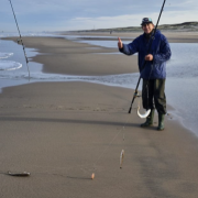 Ook wist Wout nog een meeuw te vangen, het was zijn eerste meeuw, samen wisten we de vogel weer van de vislijn te bevrijden, gelukkig maar. Na bijna 4 uur vissen werd ik wat moe en stopten we met het strandvissen. Onze gezamenlijke vangst was 12 wijtingen, 5 botten en 3 scharren.
