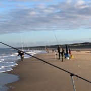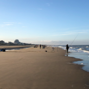 Wat een mooie visserij vanaf het Noordwijkse strand deze zondag. Het rustige herfstweer in combinatie met een kalme zee maakten het goede omstandigheden. 42 Noordwijkse strandvissers (foto) visten in deze competitie wedstrijd mee. De hoofdmoot wat betreft het vis vangen was de wijting met als goed tweede de bot, ook werd er nog wat zeebaars en schar gevangen. Zowel bij de wijtingen als botten waren er behoorlijk wat flink aan de maat (foto).