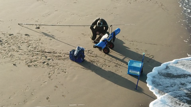 Allebei maar met 1 hengel, aas tappen, leeglopers en zandzagertjes.