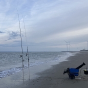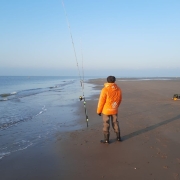 Deze dag vertrok ik zelf om iets na half zeven uit Katwijk om op tijd in Zeeland te zijn (9:15 laag). De stek zou vandaag Neeltje Jans zijn. Helaas hadden we die nog niet kunnen verkennen, dus dat moest ik ’s ochtends nog ff doen. De bedoeling was eigenlijk vanaf een pier te gaan vissen, maar door de wind (Z-5) en de steenstort uiteindelijk gekozen voor het zuidelijk deel van het strand, in de luwte van de pier met daarop De Lange Neel. Mijn lijnen lagen rond 9:00 in het water, en die van m’n zwagers rond 10:00. We hebben gevist tot ca. 15:00. Met een aantrekkende wind, maar met een flauw zonnetje kwam er uiteindelijk een mix van schar en bot op de kant. En één scholenbaarsje. De schar was een mix van postzegels tot mooi maatje. De bot was allemaal flink aan de maat, tot 35 cm aan toe! Weer een beste dag gehad.