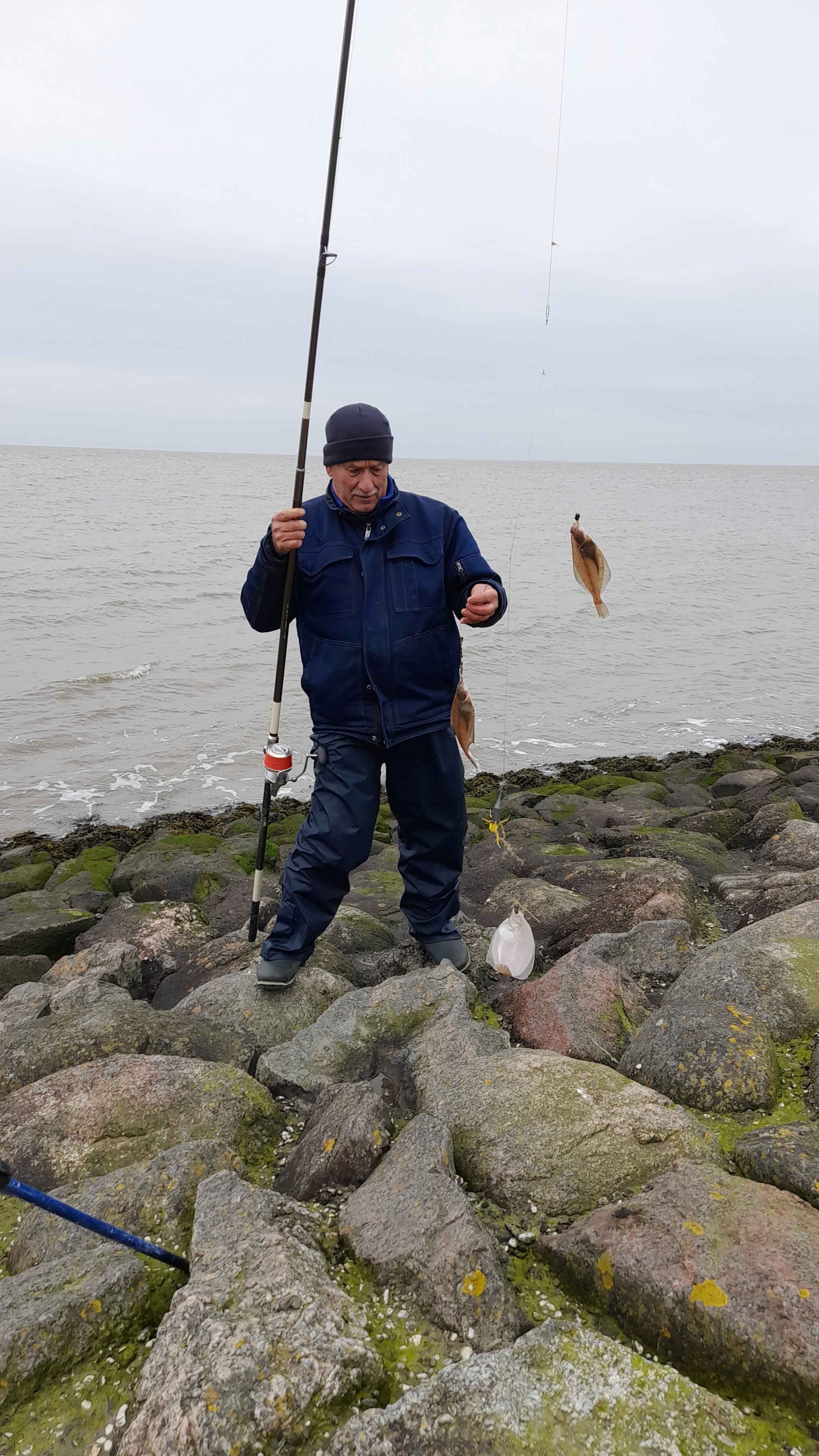 Woensdag 8 april heerlijk gevist aan de zeedijk tussen Harlingen en Roptazijl. Van half 11 tot half 4. Met opkomend water regelmatig beet. Met en na hoogwater viel het stil. Gevist met zoute pieren. 20 bot, 9 schar en 1 puitaal.
