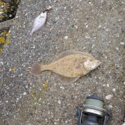 Zondag aan Zoutelande gevist. Een uur voor laagtij gestart met zeer mooi lente-weer. Resultaten lieten niet lang op zich wachten, de eerste 3 worpen leverden scharretjes op. Tijdens laagtij even een half uur stilte, maar daarna was het kermis. In een zeer vruchtbaar uur was elke worp binnen enkele minuten succesvol, zelfs 4 maal in triplet-vorm. Wijting bleef wat achterwege deze keer, het waren vnl hongerige scharren die het aas vrij snel vonden. 4 uren opkomende tij gevist en dan gestopt, aas was op (600gram pieren). Uiteindelijk 26 scharren, 3 botten en 3 wijtingen meegenomen ter consumptie. 12 scharretjes en 6 ondermaatse wijtingen teruggezet, kortom zeer vruchtbare visdag.