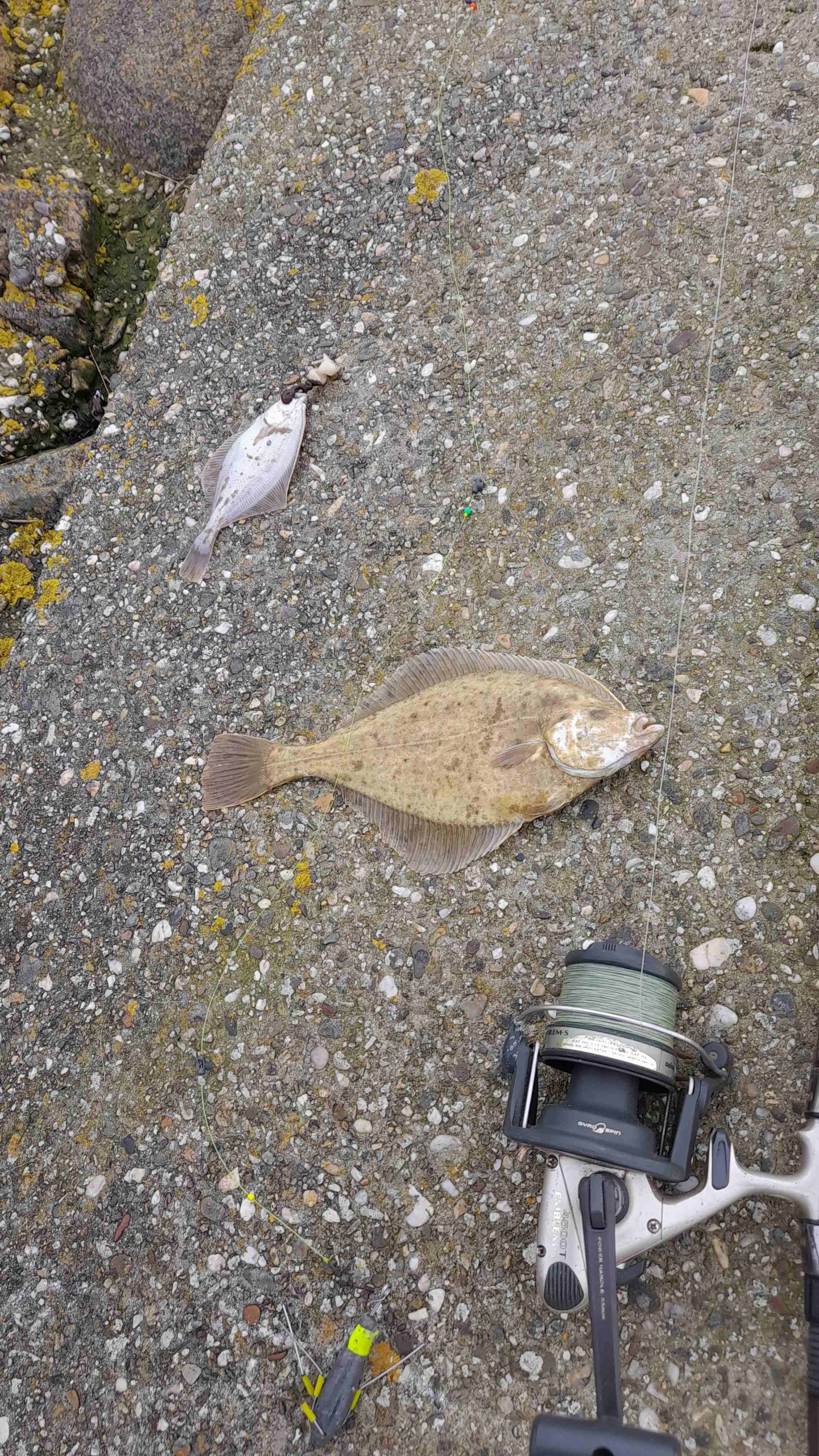 die was te klein terug en tegen 13.00 weer beet maar hij kwam niet boven toen aan de kant zag ik 2 bot er aan