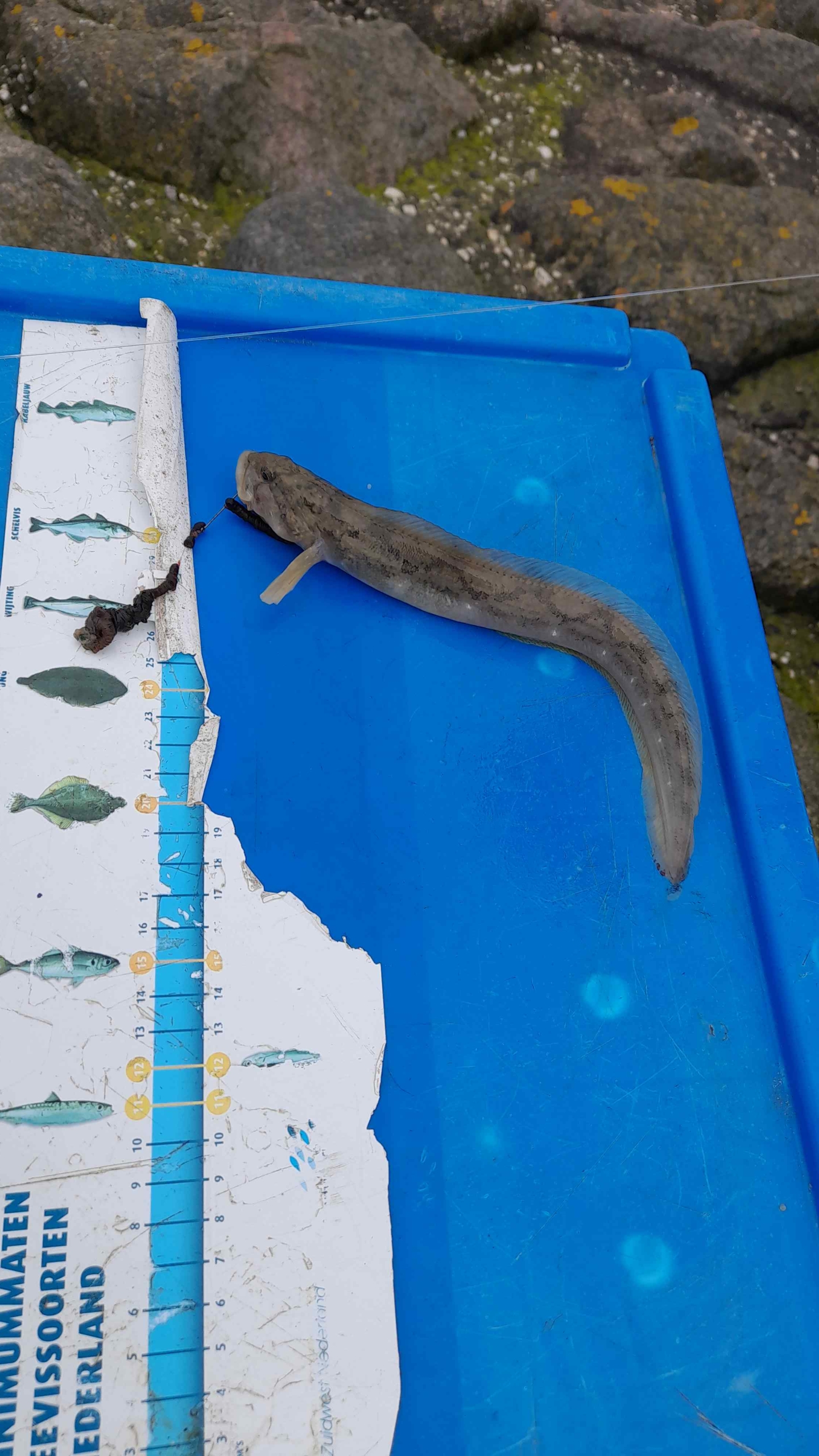 Vandaag gevist bij Roptazijl. Vanaf 7.00 uur tot 11.30 uur. Van laag naar hoog tij. gevist met drie hengels 5 meter met onderlijntjes met drie verse pieren. Gelijk dikke botten van boven de dertig cm met tweeën en drieën tegelijk. Continue kromme hengels. Totaalstand maar liefst vier 46 stuks. 15 dikke slikkers meegenomen, die waren niet meer te redden. De haak zat te diep. Overige zwemmen weer. Slechts twee kleine botten waren onder de 30 cm, overige zwemmen weer.