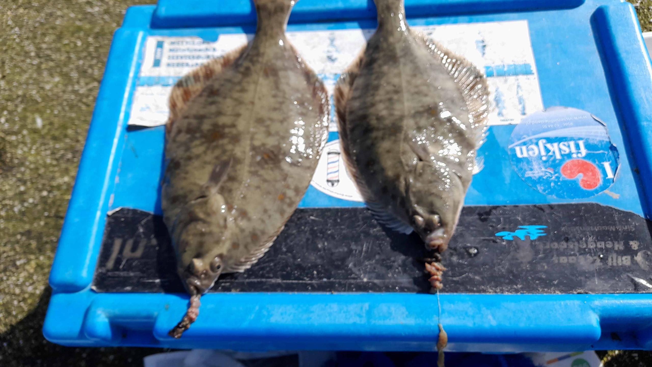 In de koelbox weer voldoende aas om per aassoort de wedstrijd te kunnen uitvissen. Met de vrijdagse visserij troffen we koud weer en wind dwars over het parcours, maar ook een mooie klus botten en dito scharren. Vissend met 2 hengels en dan over vijf visuren kwam ik aan 15 vissen en bij Henk kwamen er 25 op de kant. Bij Henk was er ook nog een puitaal/lompje. We hadden aan beide zijden nog medevissers, het koppel rechts gaf ons in het eerste uur al klop, die hadden binnen het uur al 15 botten op de kant, toen wij nog moesten sprokkelen voor de eerste vissen.