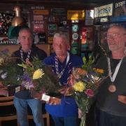Op zaterdag trokken we beiden een nummertje midden in het vak, ik in het A-vak en Henk in het B-vak. Deze keer een licht kabbeltje recht op de kant en een lekker zonnetje. Ik ging zelf voortvarend aan de gang met twee botten in de eerste twee draaien maar daarna viel ik een uur stil, terwijl mn buren bleven vangen. Tja en wat doe je dan?? Mn buurman peuterde op 25 meter uit de kant, gooide ik zelfde afstand dan kwam het aas onaangeroerd terug terwijl er de buurman 2 of 3 botten aan hingen. Omschakelen naar de eigen aanpak door te vissen op 75 meter in de volle stroom met een dik klapanker eronder bracht toch weer vis op de kant. In het tweede en derde uur van de wedstrijd kon ik nog 10 vissen aan de kaart toevoegen, maar bleef ik op 10 vissen achterstand van de buurman. Het laatste uur van de wedstrijd, met afgaand tij, kwamen er eerst nog een 3 draai en een dubbeldraai botten op de kant, maar daarna alleen nog dikke rammels op de top maar geen vis meer. Nog wel aardig was dat er bij mn dubbeldraai ook nog een “dwarskijk-bot” bij was. Intussen had ik van Henk gehoord dat die heel aardig meekon in de vangerijen. Na afloop kwamen we samen in de Harmonie voor de uitslag en de prijsuitreiking. De boodschap was duidelijk; met 18 botten en ruim 5 meter vis kwam ik niet in de buurt van het podium, mn buurman wist het potje in het A-vak en overall te winnen met 33 vissen. Henk zn 30 vissen waren ruim voldoende voor overwinning in het andere vak. Met Henk zn overwinning op zak reden we toch weer met een tevreden gevoel terug naar t Zeeuwse, het was weer een schitterde weekeinde.