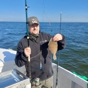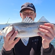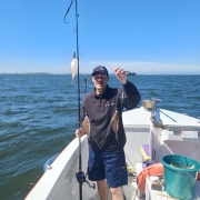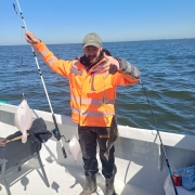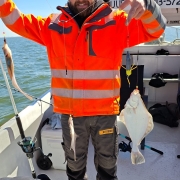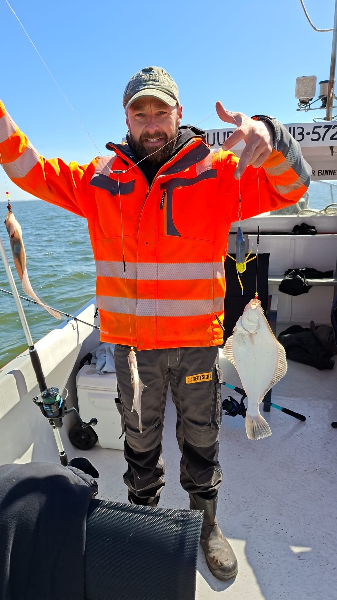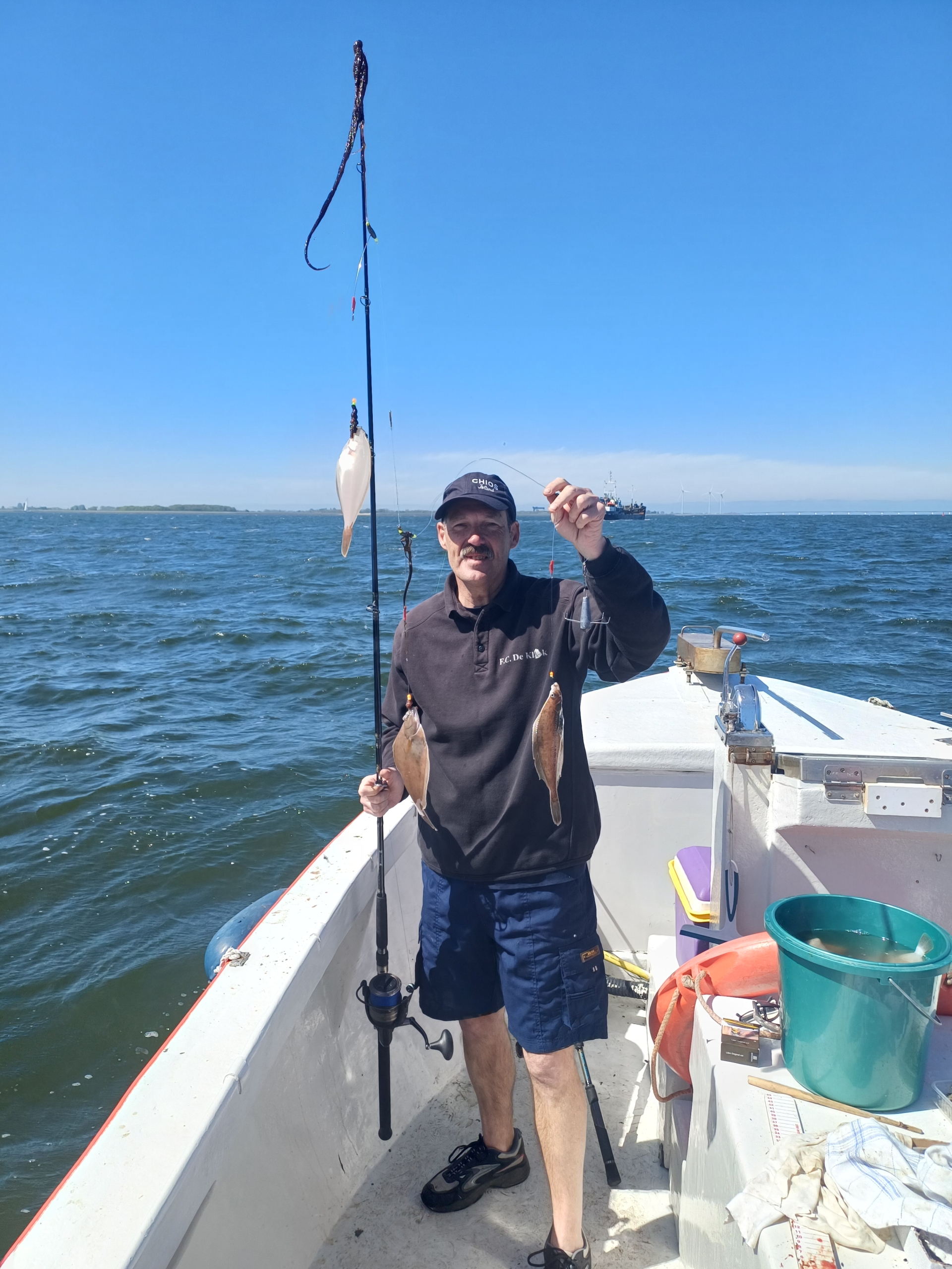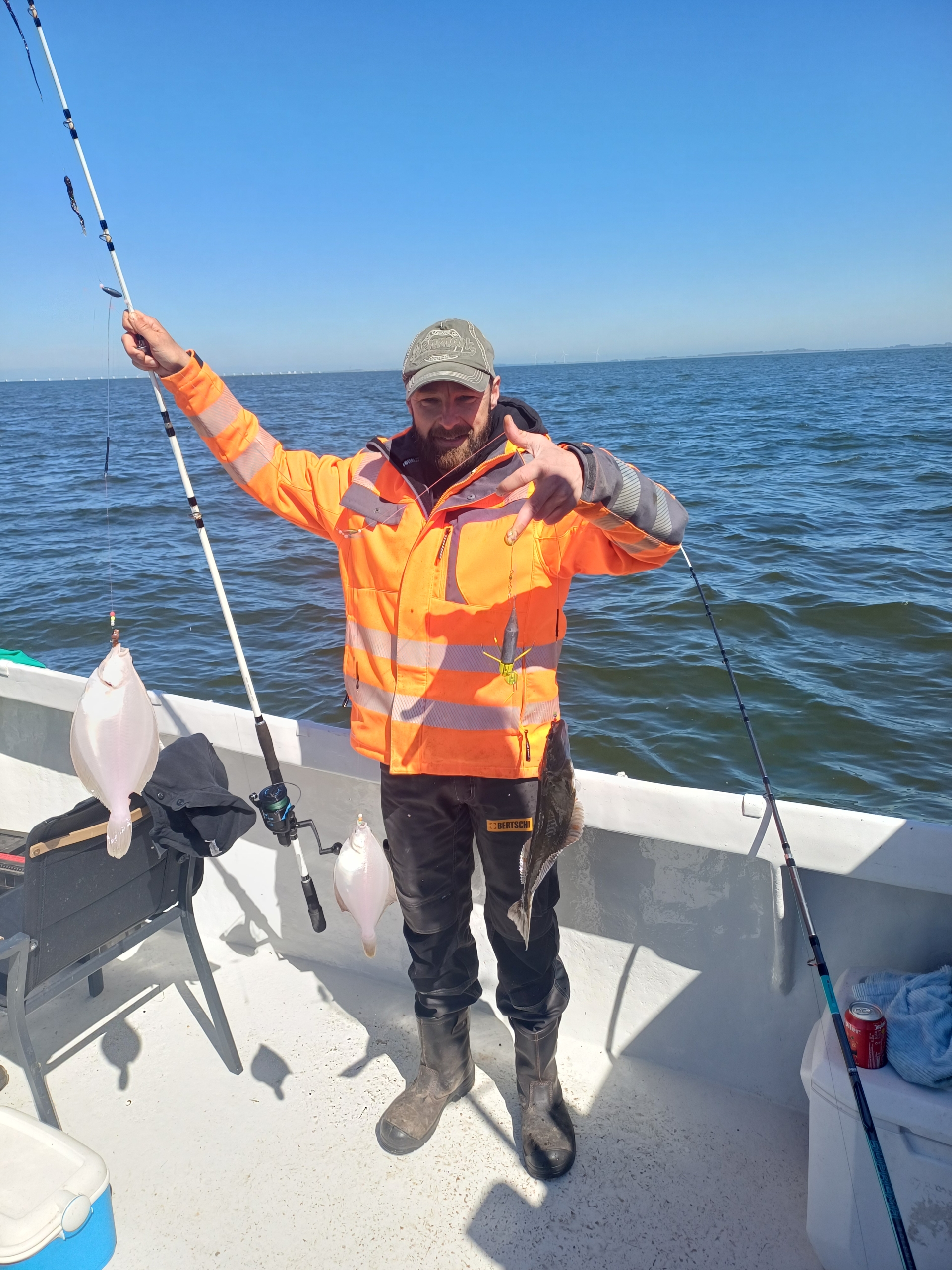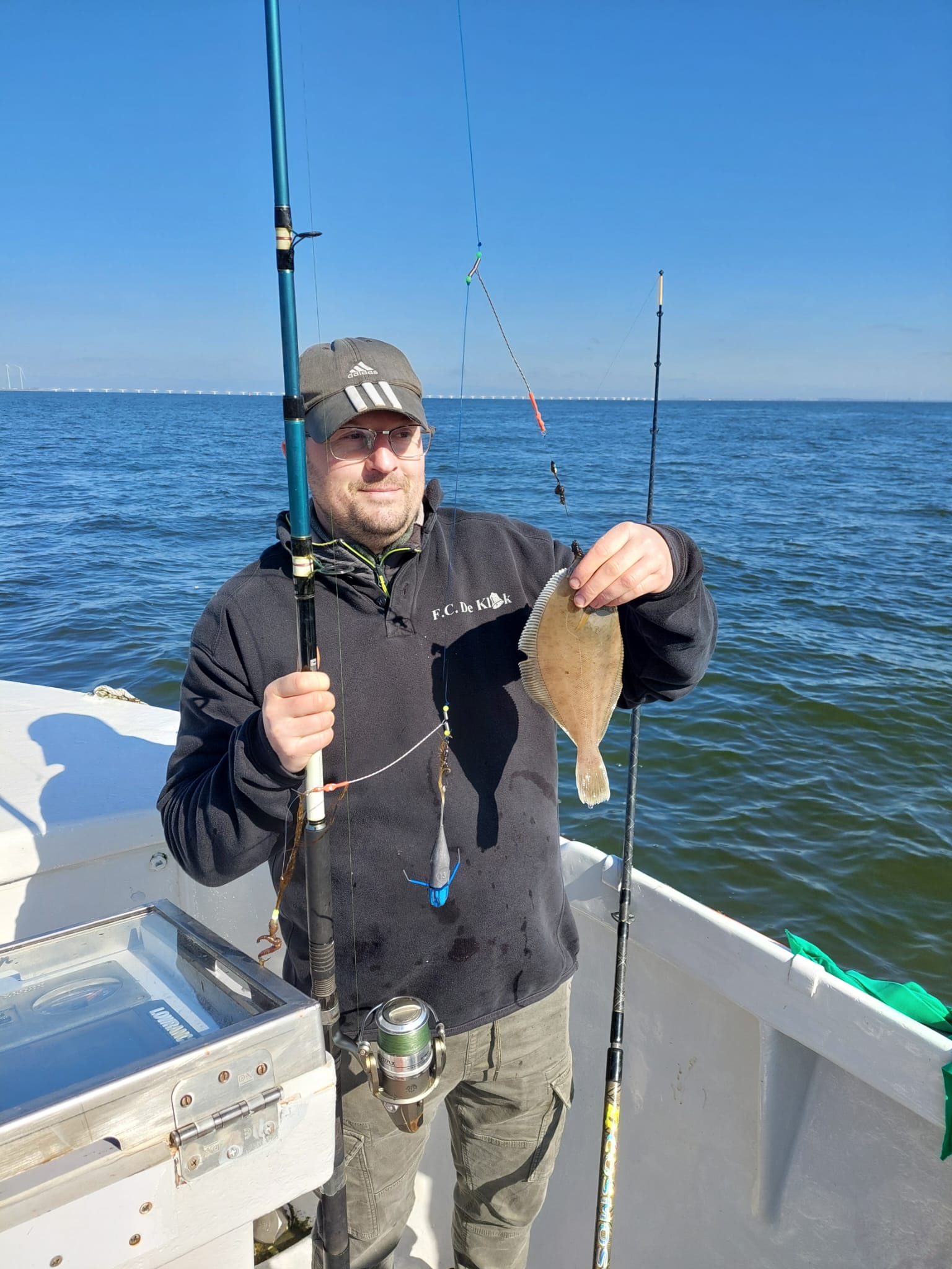 Vandaag nog eens een bootje gehuurd bij Fam. Dixhoorn. Na altijd de gezellige babbel in de ochtend en de overhandiging van het goed verzorgde aas, konden we gaan varen. Nelleke vertelde ons om naar de O14 te gaan omdat dit afgelopen dagen niet tegen viel. Die keuze hebben we dan ook gemaakt. Daar aangekomen hadden juist het tij wissel. Na ongeveer 1,5h vissen stond het afgaande tij er goed in en de beten bleven dan ook niet lang uit. Heel de dag zijn we hier blijven liggen. De vangst was bijzonder goed. We hebben in totaal daar 114 vissen gevangen met 4 man. Dit ging over 40-tal maatse (23cm in Belgie) en de rest ondermaatse scharren, 2 maatse botten en dan de prijsvis was een maatse zeebaars van 48cm en 1 ondermaatse die vrolijk terug zwemt. Dus hier zijn de eerste zeebaarsen ook gearriveerd. Weeral een geslaagde dag op de Oosterschelde.