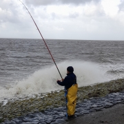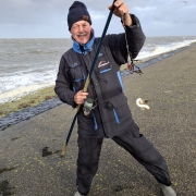 Afgelopen weekeind stond het Open Fries Kampioenschap Kustvissen weer op de agenda, bij de “afvallige” federatie Sportvisserij Fryslan. Al vanaf 2017 ga ik daar samen met Henk heen, en de laatste jaren is ook Wim van de partij en gaan we met 3 vissers van een kleine Zeeuwse vereniging helemaal naar de Waddenzee in het hoge noorden. Donderdag rond de middag afgereden vanaf Sirjansland op weg naar Sexbierum zodat we eind van de middag al aan de eerste Texelse Skuumkoppen zaten. Vrijdagmorgen een proefsessie gedaan onder zware weersomstandigheden, veel regen, west 7 met uitschieters schuin op de kant, een blubberige zee vol schuimkoppen en heeel erg hoog water. De dammetjes bij de uitlaat van het Roptagemaal waren niet meer te zien onder de golven en de auto van t waterschap kwam er polshoogte nemen. De vangerij was niet bijzonder, elk een paar botten, wat scharren en voor mij nog een duimdikke paling. Eind van de middag waren we terug in de Harmonie om de kleding te laten drogen en een paar Skuumkoppen nat te maken. Zaterdag mochten we voor het eggie. Wij zaten nog aan ons ontbijt toen de eerste deelnemers binnenkwamen. Er waren 30 deelnemers ingeschreven en die werden netjes verdeeld over 2 vakken. Henk kwam in het A vak en Wim en ik kwamen in het B vak terecht. Tijdens de loting was er vollop tijd om bij te praten en te kletsen over het gesukkel rondom het fusieproces. Friesland haakt af, maar gelukkig zorgen ze er in Friesland voor dat we ook volgend jaar weer welkom zijn. De weersomstandigheden waren iets vriendelijker zaterdag maar een comfortversie werd het niet, ook nu schuimkoppen, blubberig water en veel druifvuil. In het eerste uur kon ik 1 wijting en 1 bot in de emmer krijgen, in het tweede uur kwam ik aan 4 vissen en in het derde uur kwamen er nog 6 bij, dus het laatste uur waren de verwachtingen hoog gespannen op nog meer vis. Maar de vangerij viel stil in het B vak, dus er kwam niks meer bij. 12 vissen in totaal dus, maar ik hoorde ook berichten over 20+ stuks bij andere deelnemers. De uitslag was verrassend, mijn 12 vissen in het B vak bleken voldoende voor het 2e treetje op het podium. De grotere aantallen vis bleken bij het A vak te horen, daar won Mike de pot. Behalve een bos bloemen, een vleespakket van de lokale warme slager, leverde het ook nog een medaille op. Henk met 19 vissen in het A vak en Wim met 8 vissen in het B vak vielen met een vierde plaats net buiten het podium. Team Dreischor deed t niet slecht met 3 deelnemers in de top-vijf.