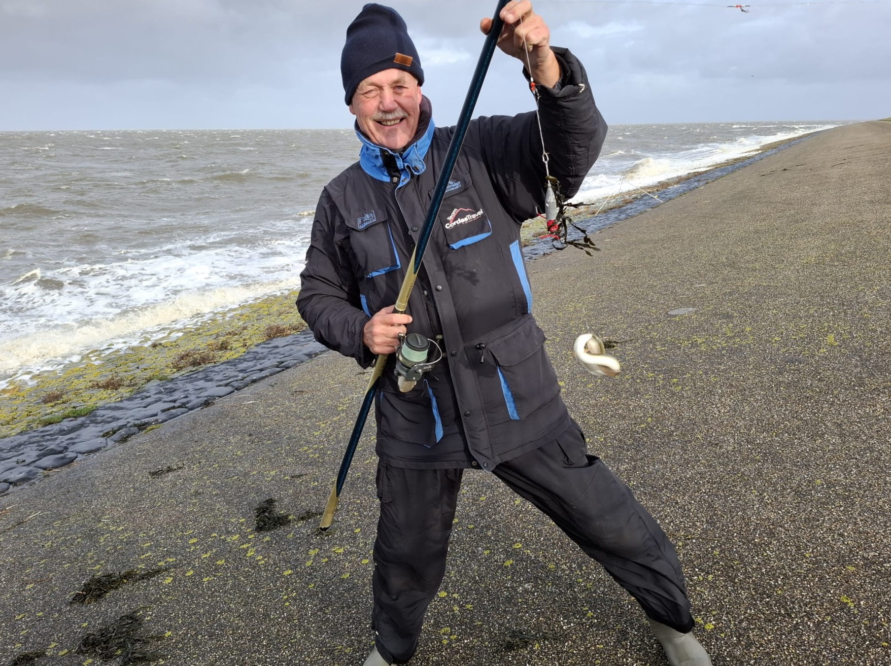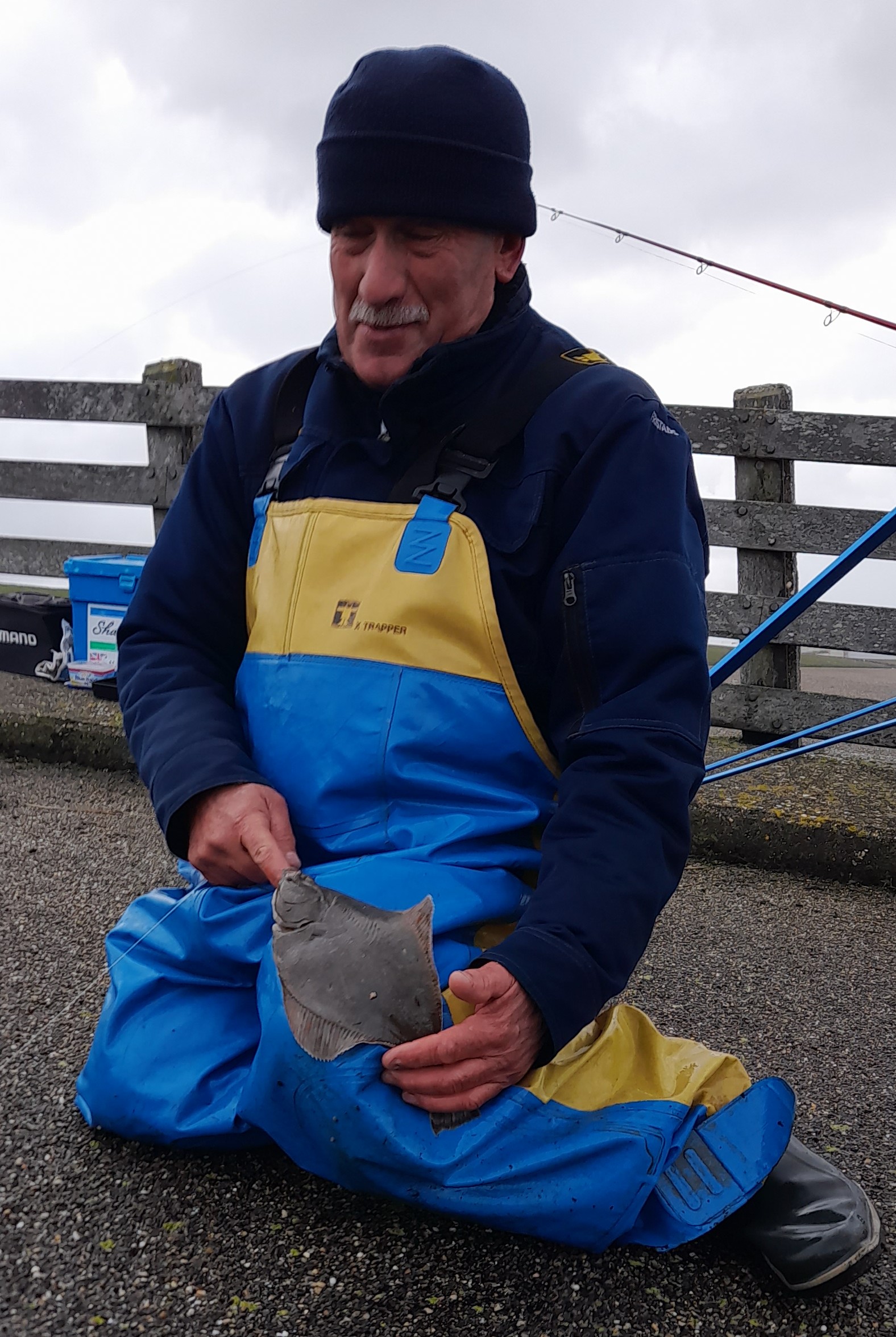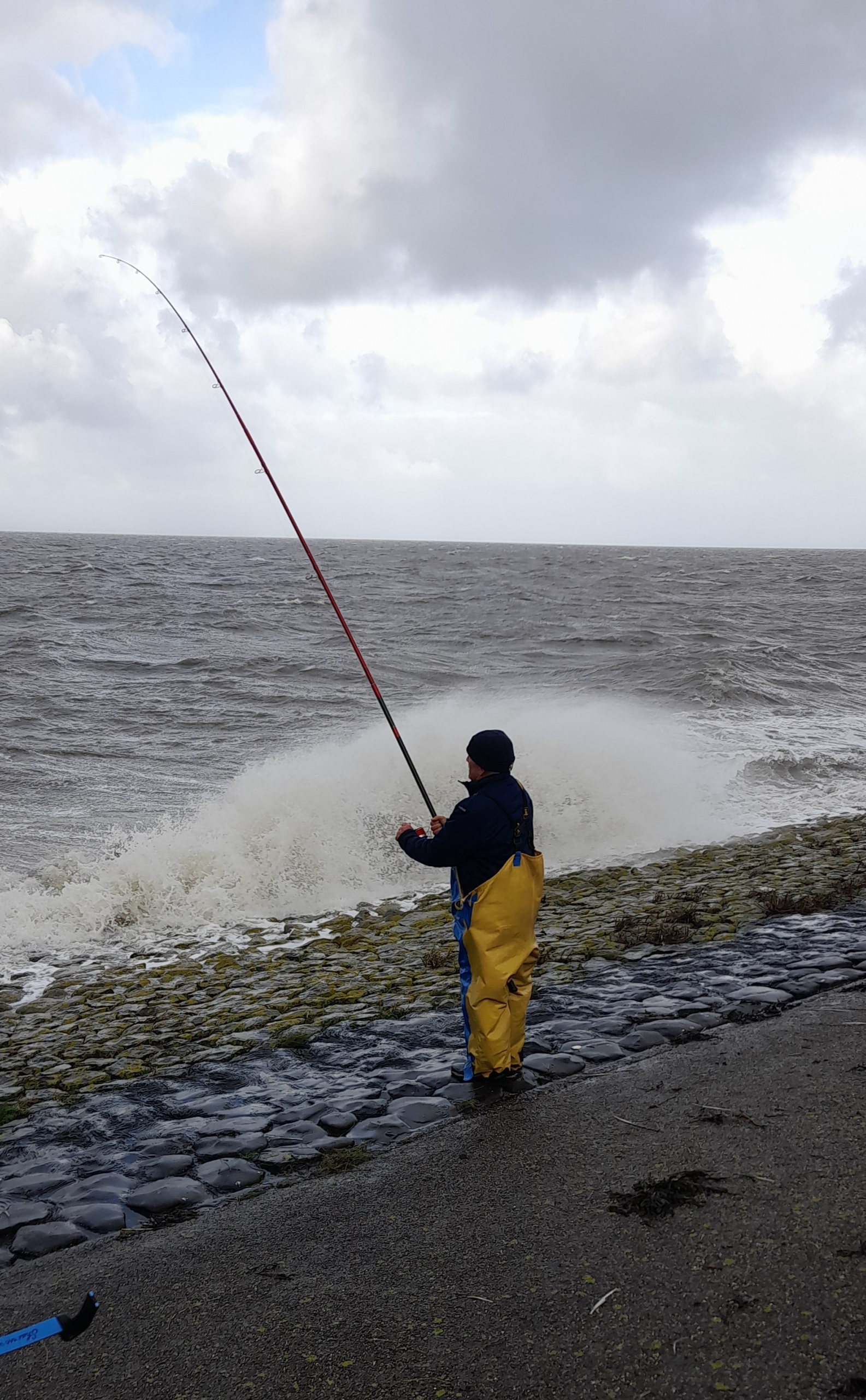 Afgelopen weekeind stond het Open Fries Kampioenschap Kustvissen weer op de agenda, bij de “afvallige” federatie Sportvisserij Fryslan. Al vanaf 2017 ga ik daar samen met Henk heen, en de laatste jaren is ook Wim van de partij en gaan we met 3 vissers van een kleine Zeeuwse vereniging helemaal naar de Waddenzee in het hoge noorden. Donderdag rond de middag afgereden vanaf Sirjansland op weg naar Sexbierum zodat we eind van de middag al aan de eerste Texelse Skuumkoppen zaten. Vrijdagmorgen een proefsessie gedaan onder zware weersomstandigheden, veel regen, west 7 met uitschieters schuin op de kant, een blubberige zee vol schuimkoppen en heeel erg hoog water. De dammetjes bij de uitlaat van het Roptagemaal waren niet meer te zien onder de golven en de auto van t waterschap kwam er polshoogte nemen. De vangerij was niet bijzonder, elk een paar botten, wat scharren en voor mij nog een duimdikke paling. Eind van de middag waren we terug in de Harmonie om de kleding te laten drogen en een paar Skuumkoppen nat te maken. Zaterdag mochten we voor het eggie. Wij zaten nog aan ons ontbijt toen de eerste deelnemers binnenkwamen. Er waren 30 deelnemers ingeschreven en die werden netjes verdeeld over 2 vakken. Henk kwam in het A vak en Wim en ik kwamen in het B vak terecht. Tijdens de loting was er vollop tijd om bij te praten en te kletsen over het gesukkel rondom het fusieproces. Friesland haakt af, maar gelukkig zorgen ze er in Friesland voor dat we ook volgend jaar weer welkom zijn. De weersomstandigheden waren iets vriendelijker zaterdag maar een comfortversie werd het niet, ook nu schuimkoppen, blubberig water en veel druifvuil. In het eerste uur kon ik 1 wijting en 1 bot in de emmer krijgen, in het tweede uur kwam ik aan 4 vissen en in het derde uur kwamen er nog 6 bij, dus het laatste uur waren de verwachtingen hoog gespannen op nog meer vis. Maar de vangerij viel stil in het B vak, dus er kwam niks meer bij. 12 vissen in totaal dus, maar ik hoorde ook berichten over 20+ stuks bij andere deelnemers. De uitslag was verrassend, mijn 12 vissen in het B vak bleken voldoende voor het 2e treetje op het podium. De grotere aantallen vis bleken bij het A vak te horen, daar won Mike de pot. Behalve een bos bloemen, een vleespakket van de lokale warme slager, leverde het ook nog een medaille op. Henk met 19 vissen in het A vak en Wim met 8 vissen in het B vak vielen met een vierde plaats net buiten het podium. Team Dreischor deed t niet slecht met 3 deelnemers in de top-vijf.