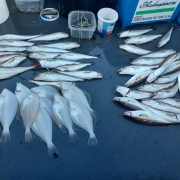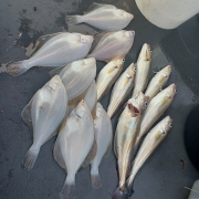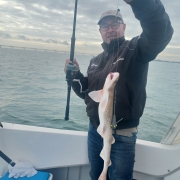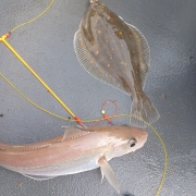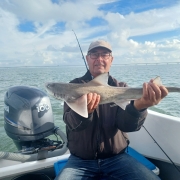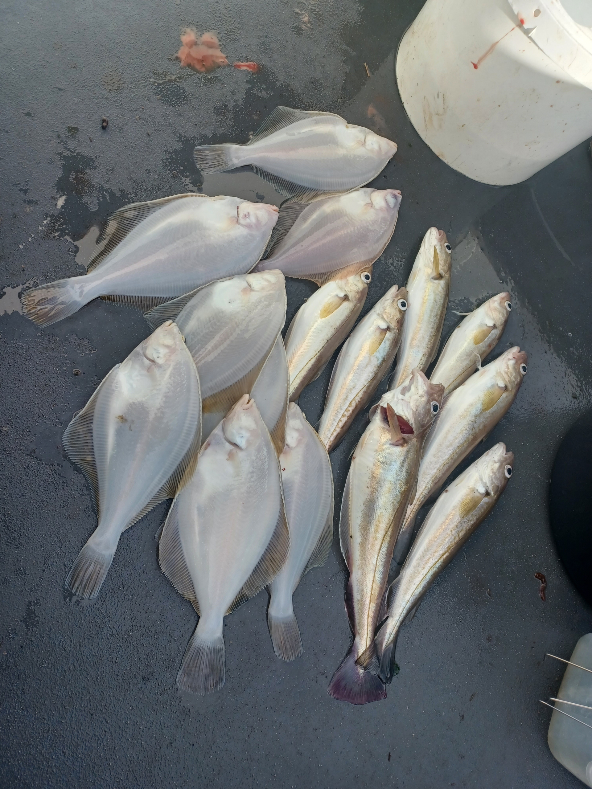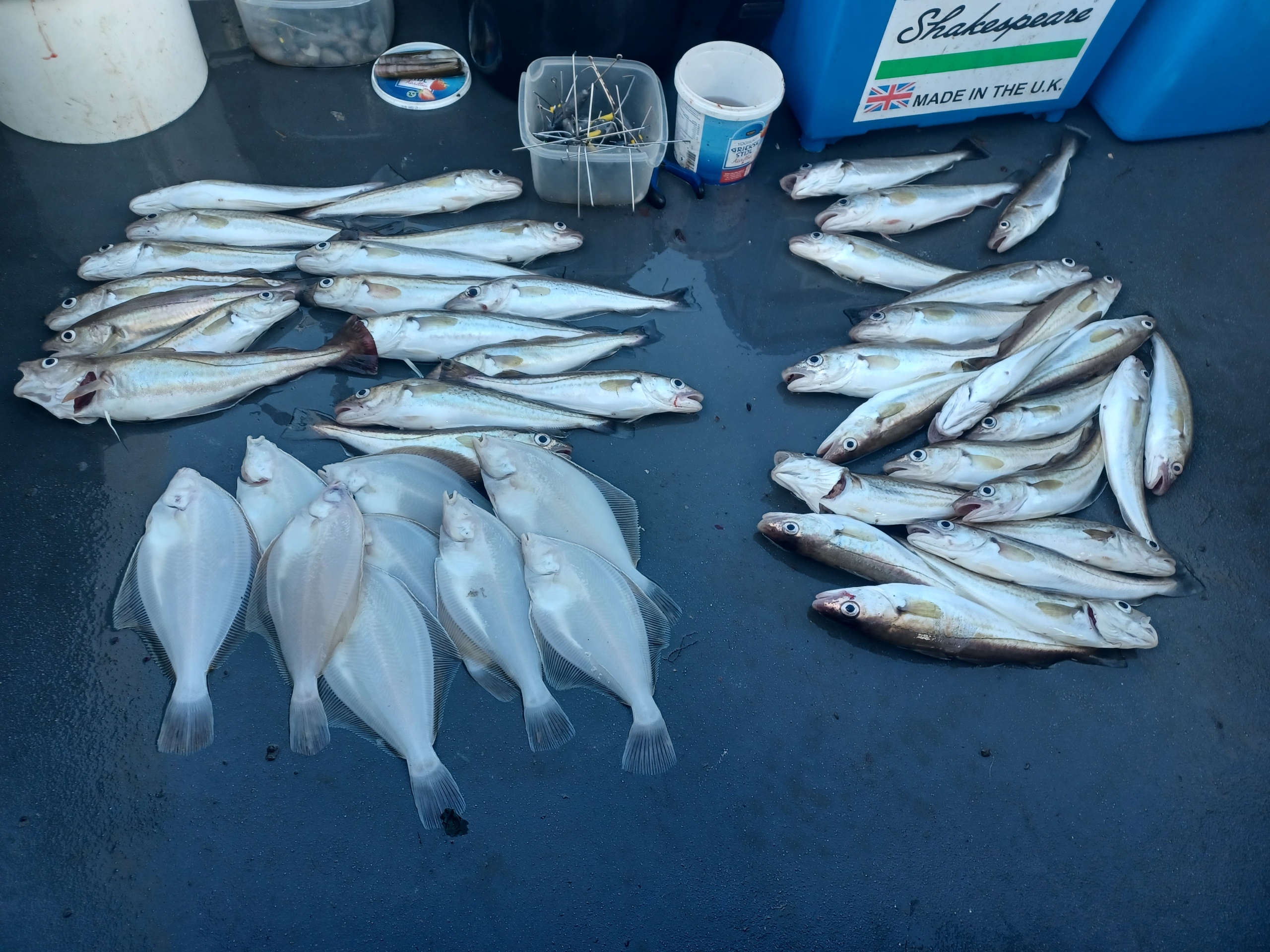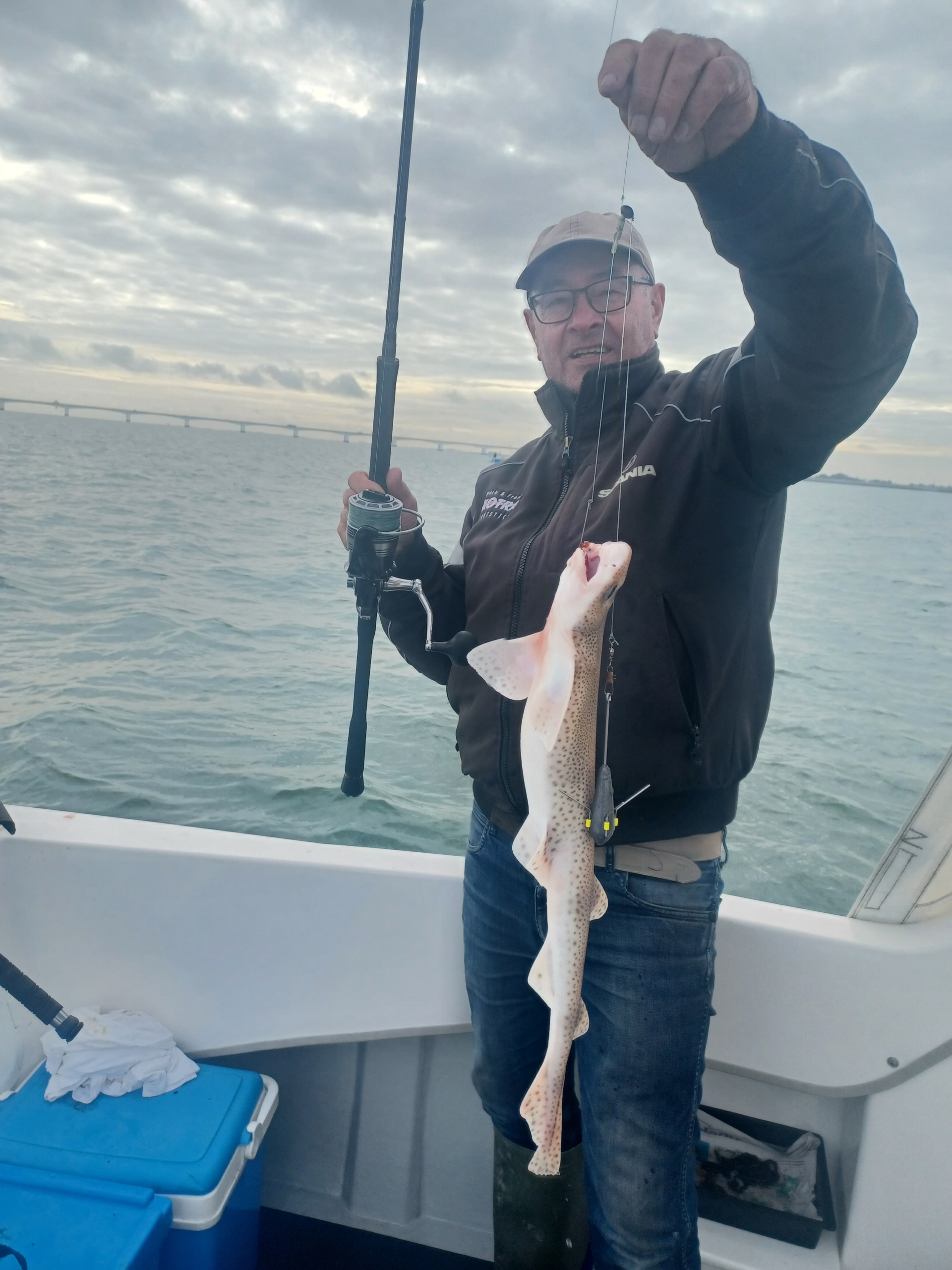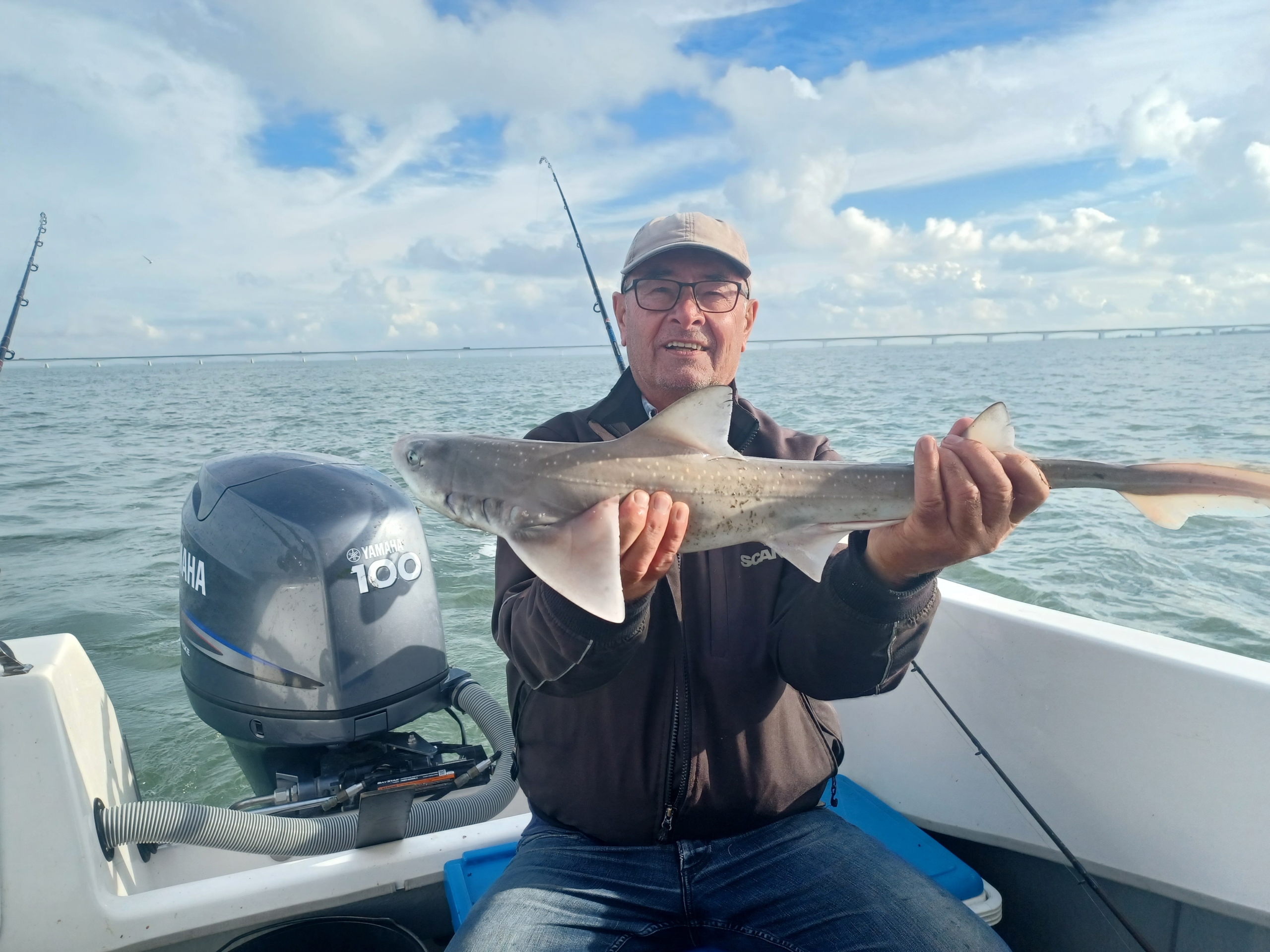 Vandaag heerlijk dagje gevist vanuit de boot we zijn vertrokken vanaf Wemeldinge en als eerste stek gekozen voor de O14 hier kwamen al vrij snel de eerste scharren naar boven na een 1,5 uur rond de kentering toch doorgevaren naar het schaar van Colijn, hier nog even wachten tot de stroom er in kwam ook hier hoofdzakelijk schar met af en toe wat wijting erbij na 13.30 ging er beneden een knop om volgens mij Piet ving 1 hondshaaitje en even later nog een gladde haai , verschillende botten kwamen binnen een paar scholletjes en een hele klus wijting tot de laatste draai vis rond de 15 maatse scharren en 50 wijtingen gevangen zeker nog dat aantal aan ondermaatse terug tegen 17 uur anker op en terug naar Wemeldinge, het was werkelijk een Top dag !! nu liet de Oosterschelde zich eens van de goede kant zien we hebben het wel eens minder gehad