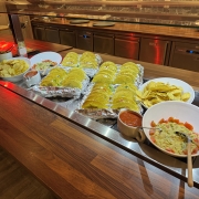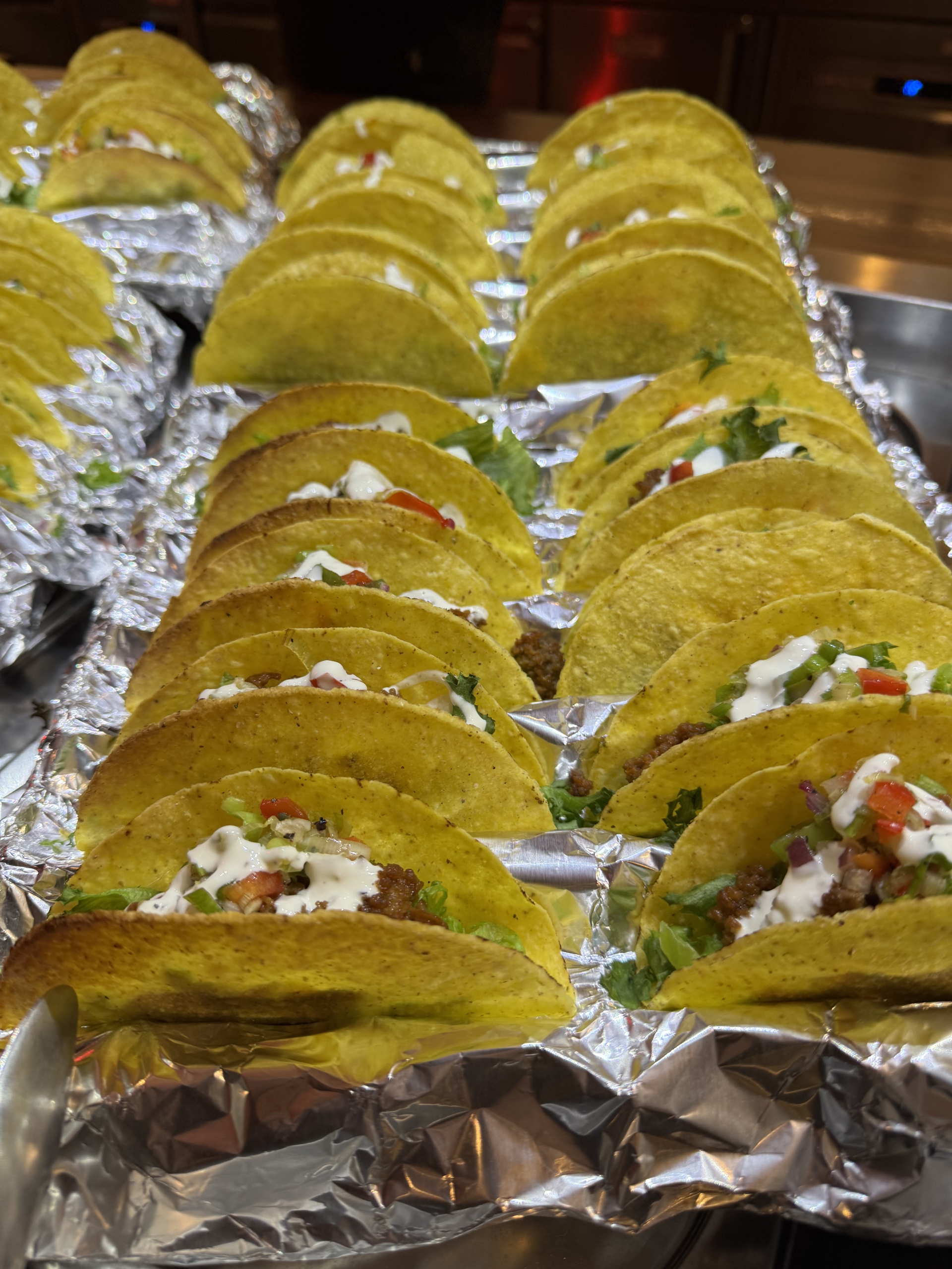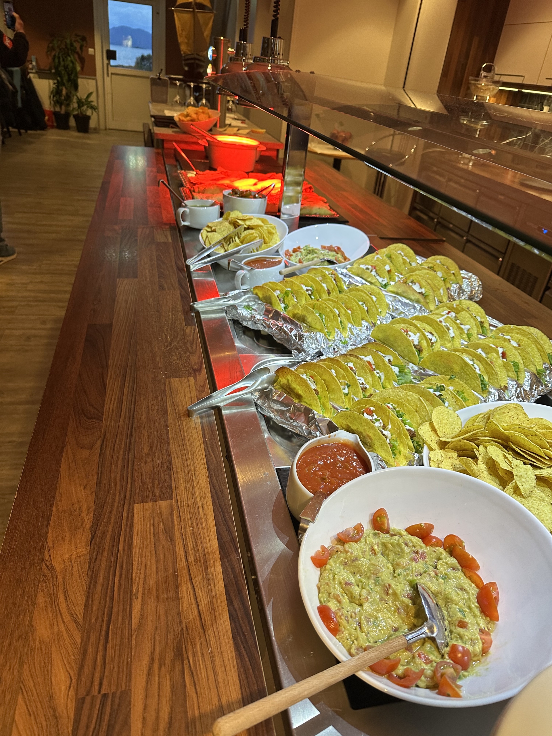 Wat stond er op het menu? Zelfgemaakte pizza’s, verse lasagne van topkwaliteit, rendierstoof en op de laatste dag een uitgebreid Mexicaans buffet met tortilla’s, quesadilla’s en taco’s. Alles was vers, overvloedig en bovenal ontzettend lekker!