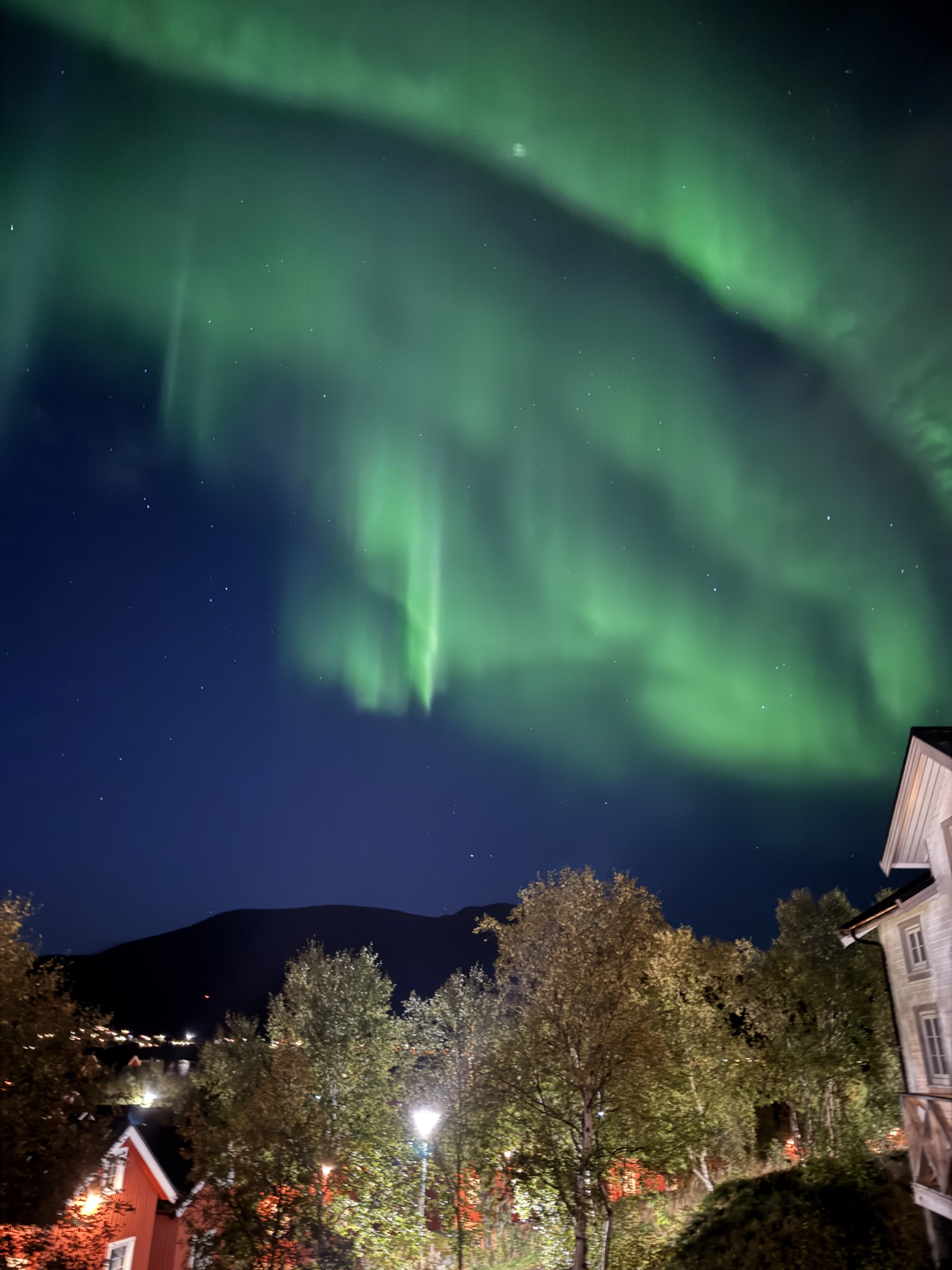 Als symbolisch afscheid trakteerde Noorwegen ons nog op een adembenemende, magische lichtshow: het indrukwekkende Noorderlicht (Aurora Borealis) – een betoverende afsluiter van een geslaagde reis.