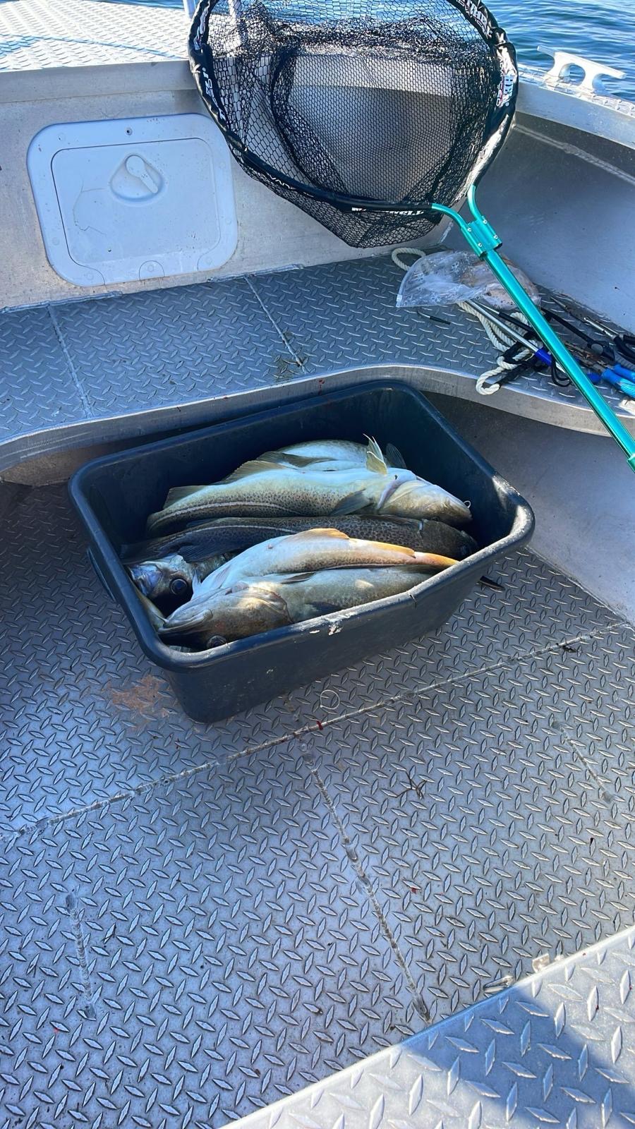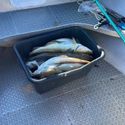De vakantie bij Gardsøya Rorbuer zit er weer bijna op. We hebben veel geluk gehad met het weer. Er zijn enkele windstille dagen geweest waarop we ver de zee op konden. Daar hebben we goed gevangen. Mooie grote kabeljauw en een paar dikke pollakken. Helaas is dit bijna een uur varen op 15 mijl van de haven. In het fjord was het sprokkelen en waren de gullen mager.