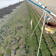 Had vandaag zin om weer eens te proberen bij Waarde.14 te vissen. Dus eerst op tijd de pieren besteld bij de fam Dixhoorn en dat was geen punt. Had deze opgehaald tegen 10.00 en toen na de waterkant toe gegaan. Het zeewater was zie foto nog ver weg dus tijd genoeg om de hengels gereed te zetten. Had 5 ons pieren besteld en moest Ik het er mee doen deze dag en toen het water al onder de kant stond. Kwamen er ineens veel vissers over de dijk en uiteindelijk stonden we met 11 man. Dus zal je denken dat er veel werd gevangen maar is veel tegen gevallen later de dag. Kreeg pas beet tegen 15 uur en het water zal tegen 16.30 op zijn hoogst zijn en met ophalen bleek er een wijting aan te zitten. De onderlijn weer richting het zilte nat gegooid en beet kreeg ik met de andere hengel om 15.43 en daar zaten twee kleine Wijtingen er aan. Heb gevist met 6 uur opkomend water gevist en was de vangsten vandaag teleurstellend. Totaal 9 kleine Wijtingen gevangen en gestopt tegen 16.20 en na huis terug gereden. Ik alle team leden van Zeevisland fijne kerstdagen en een gezond 2026 toewensen. Ook mij broer Jan en me vismaat Johan Frijters ook fijne kerstdagen en een gezond visjaar 2026 toegewenst.