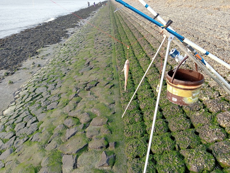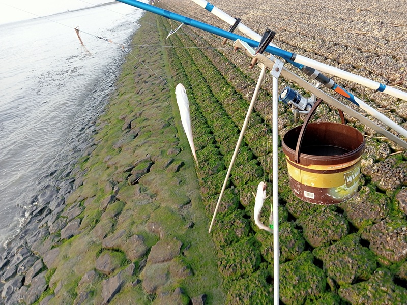 Had vandaag zin om weer eens te proberen bij Waarde.14 te vissen. Dus eerst op tijd de pieren besteld bij de fam Dixhoorn en dat was geen punt. Had deze opgehaald tegen 10.00 en toen na de waterkant toe gegaan. Het zeewater was zie foto nog ver weg dus tijd genoeg om de hengels gereed te zetten. Had 5 ons pieren besteld en moest Ik het er mee doen deze dag en toen het water al onder de kant stond. Kwamen er ineens veel vissers over de dijk en uiteindelijk stonden we met 11 man. Dus zal je denken dat er veel werd gevangen maar is veel tegen gevallen later de dag. Kreeg pas beet tegen 15 uur en het water zal tegen 16.30 op zijn hoogst zijn en met ophalen bleek er een wijting aan te zitten. De onderlijn weer richting het zilte nat gegooid en beet kreeg ik met de andere hengel om 15.43 en daar zaten twee kleine Wijtingen er aan. Heb gevist met 6 uur opkomend water gevist en was de vangsten vandaag teleurstellend. Totaal 9 kleine Wijtingen gevangen en gestopt tegen 16.20 en na huis terug gereden. Ik alle team leden van Zeevisland fijne kerstdagen en een gezond 2026 toewensen. Ook mij broer Jan en me vismaat Johan Frijters ook fijne kerstdagen en een gezond visjaar 2026 toegewenst.